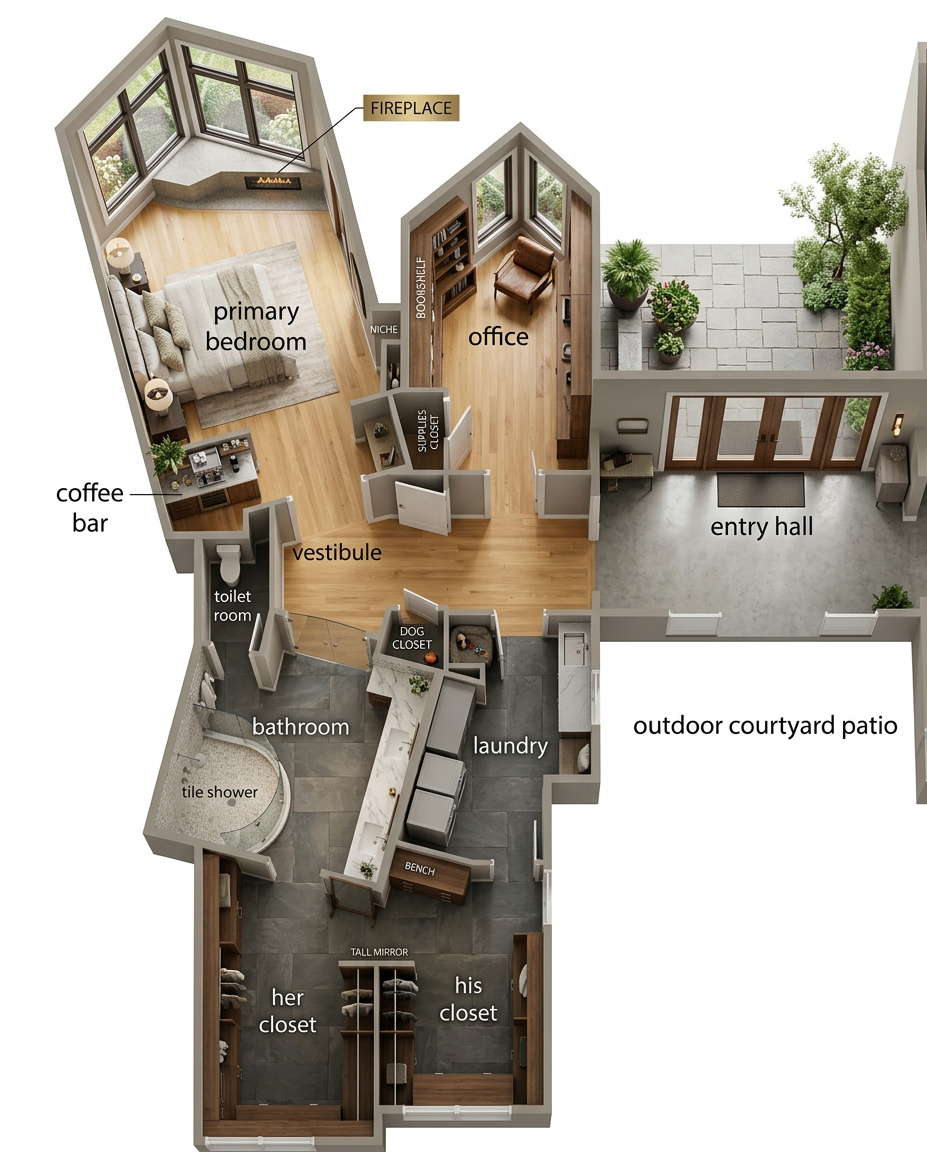 modernist exterior shot please give me 5 variations to redesign this wall architecture