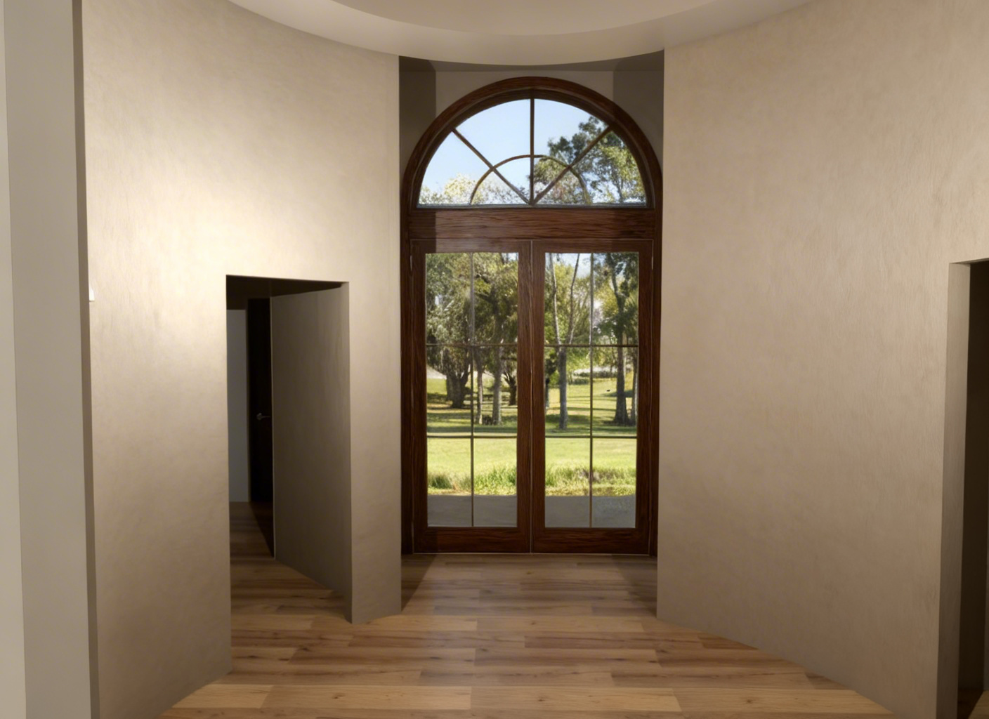 ultra realistic architectural soft natural daylight entering through side windows combined with warm artificial ceiling lighting creating a balanced and inviting atmosphere high detail materials realistic reflections and shadows global illumination volumetric light subtly visible cinematic composition eye level perspective depth of field photorealistic textures 4k quality