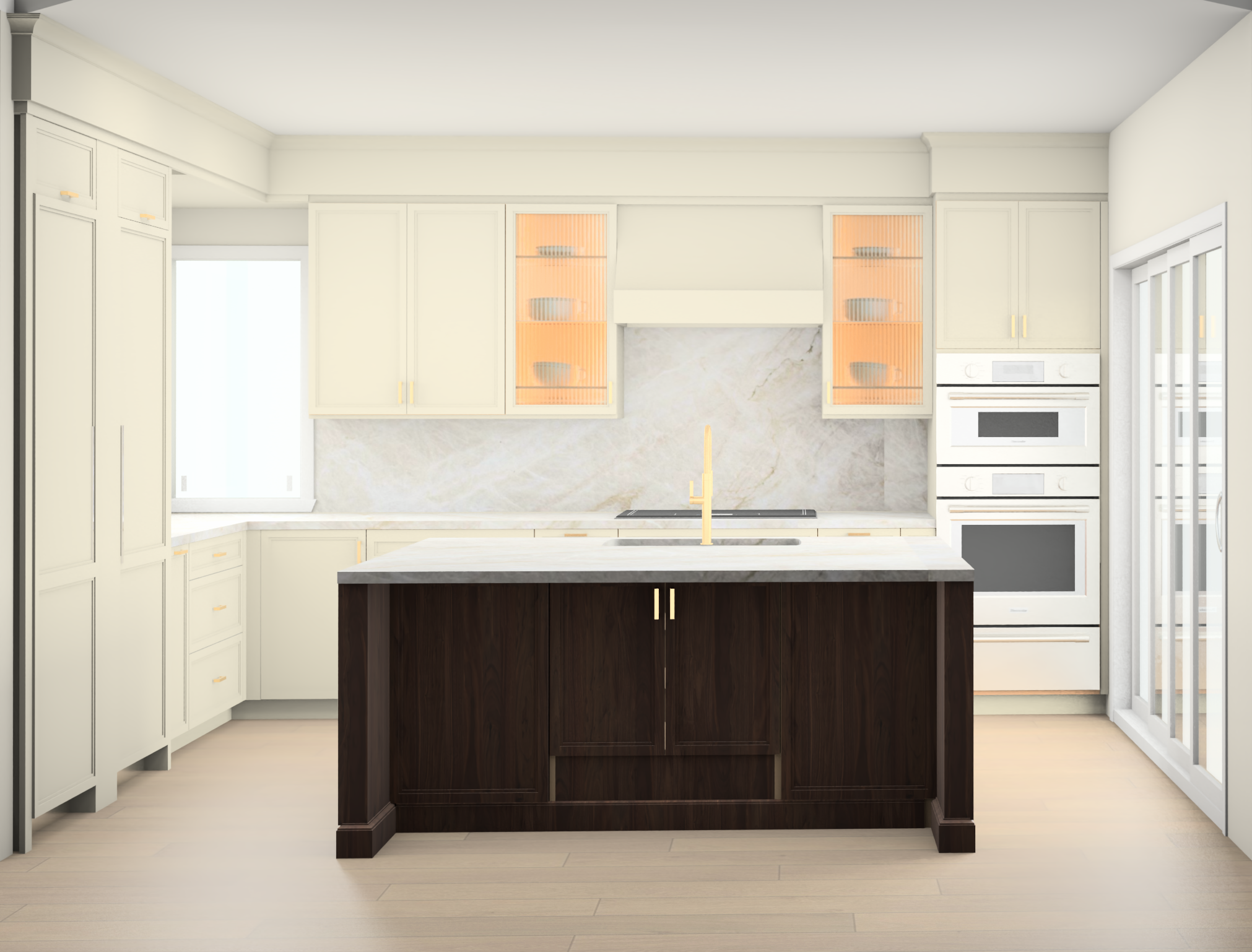 make more realistic add kitchen accessories add patio to sliding doors add trees outside windows add soft sunlight