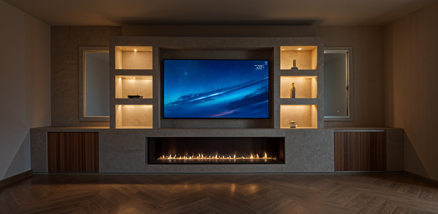 change window scenery to a calm tree background remove large left window turn into plain wall remove faucet from right side of tv