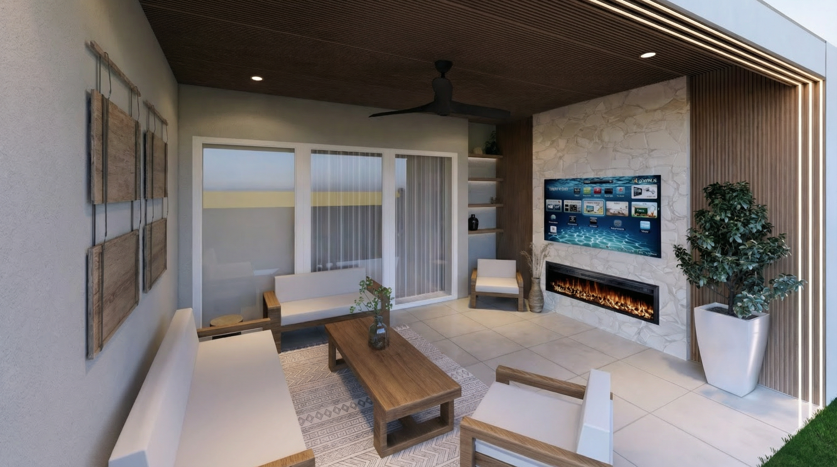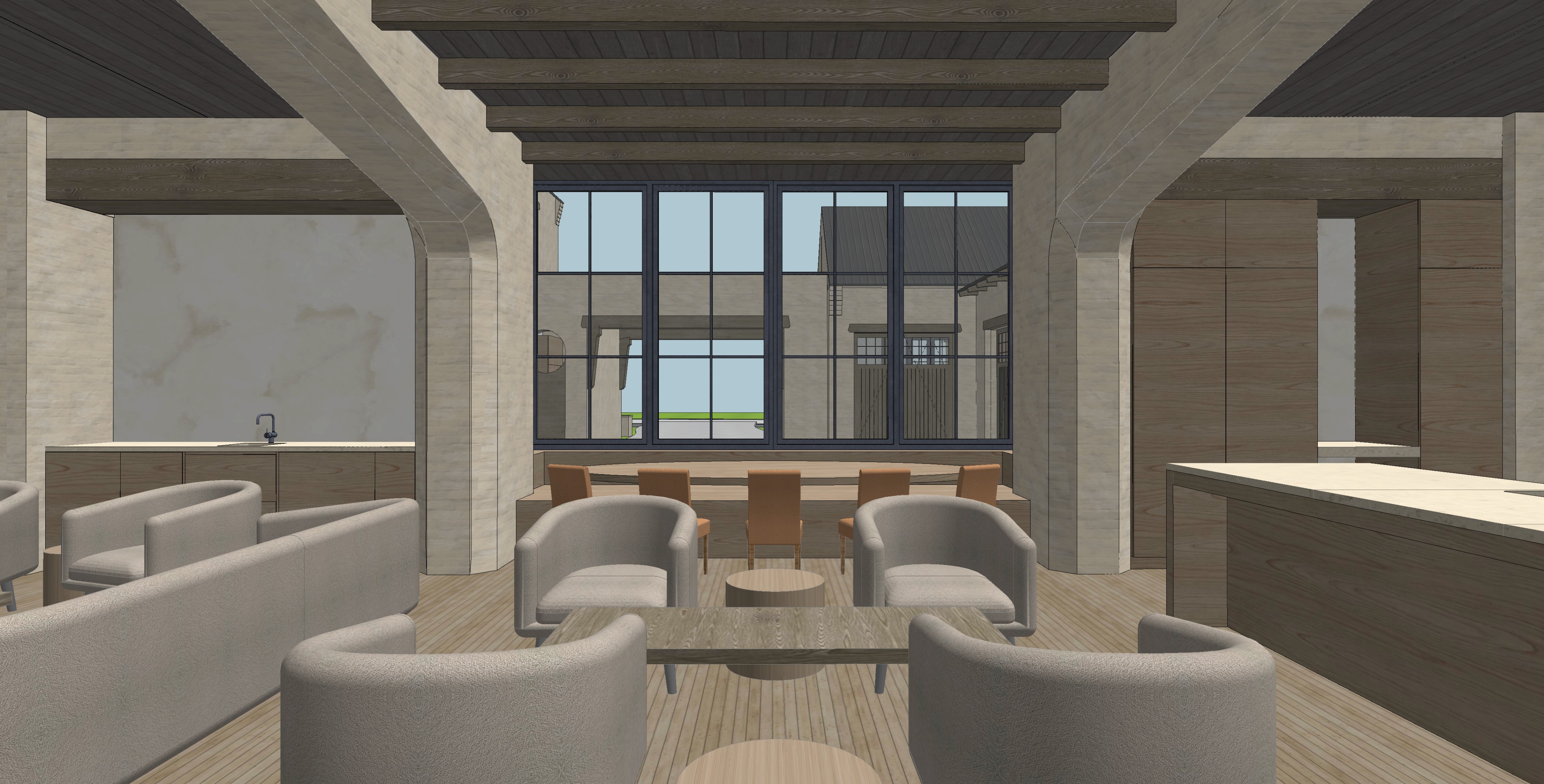 tan limewash brick white oak ceiling white oak floor antique beams quality interior lighting