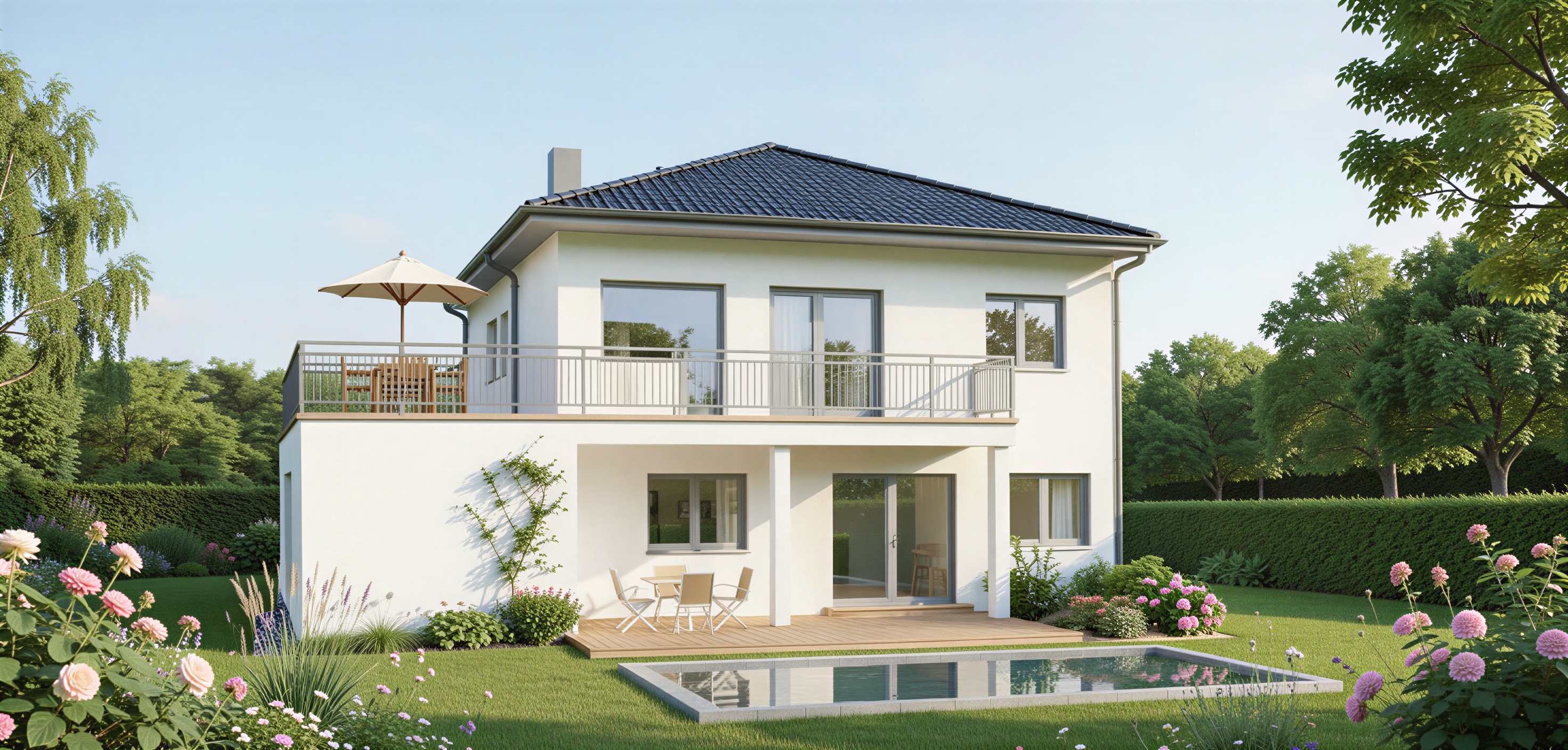 bitte stelle das fenster im obergescho links von der balkont re durchgehend und nicht bodentief dar alles andere exakt beibehalten
