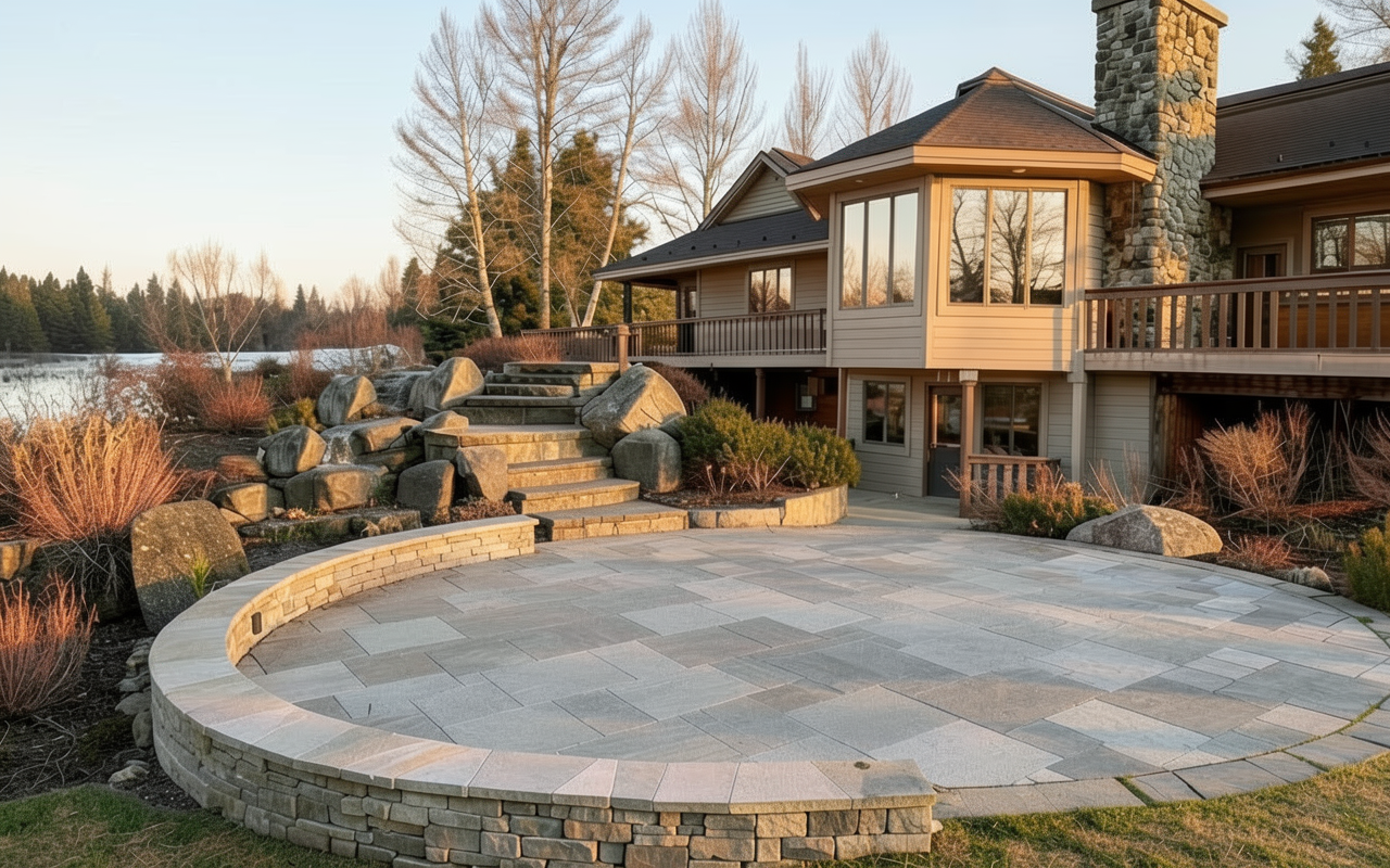 add idaho native shrubs to the left of the patio but not in front of water feature
