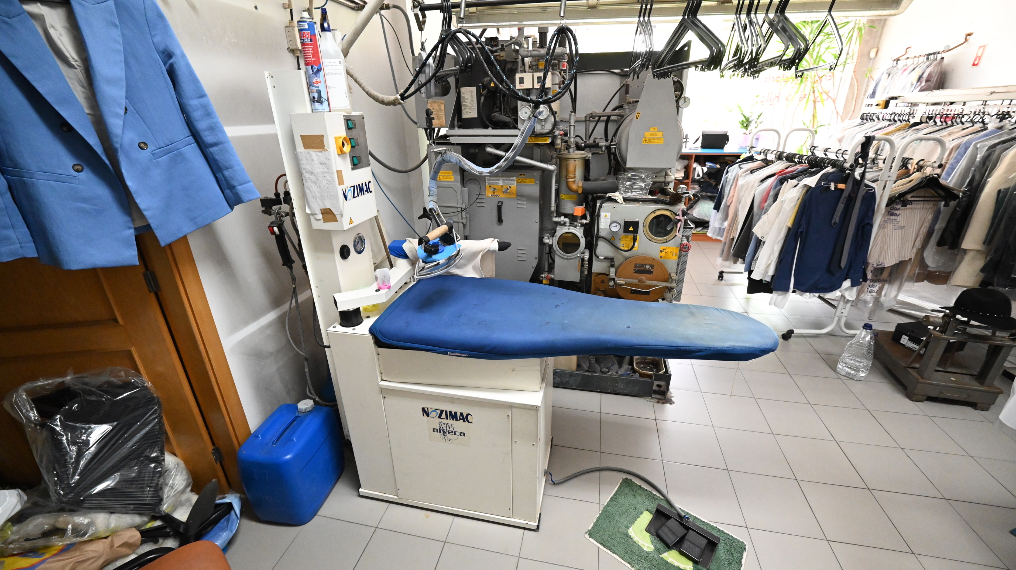 edita esta foto com ia de modo a deixares esta lavandaria mais organizada e mais limpa sem roupas no ch o as roupas penduradas e tudo o que esta a mais e a desorganizar a lavandaria etc melhora tambem a luz mas nao alteres nem retires nenhuma das maquinas e do mobili rio esta foto para portais imobili rios como idealista imovirtual etc
