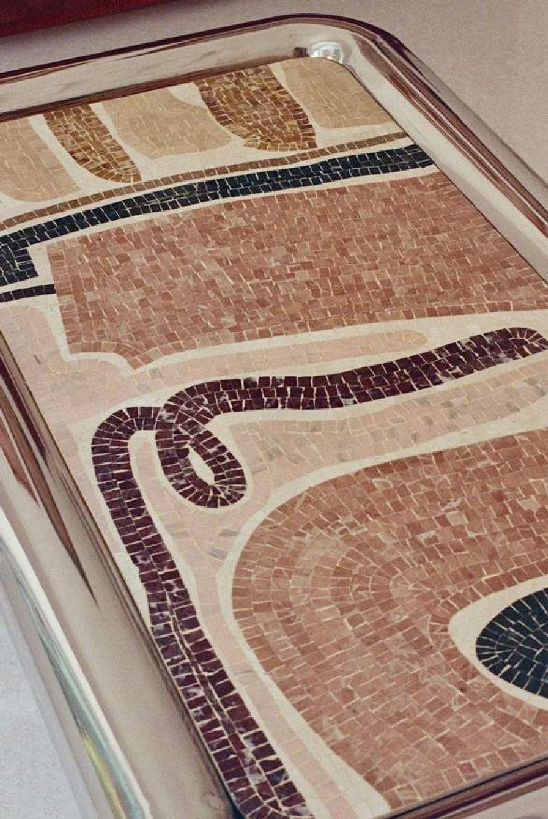 baroque interior from the top orthagonal seamless mosaic floor pattern dark red pink cream tone colors no perspective top down drone view of entire floor architecture