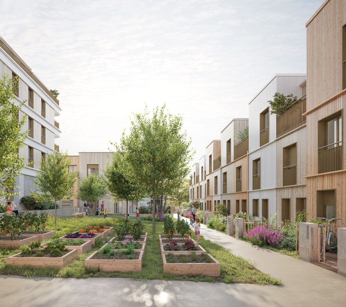 exterior shot exterior shoot vegetation 5 to 6 story residential building with balcony add windows and texture