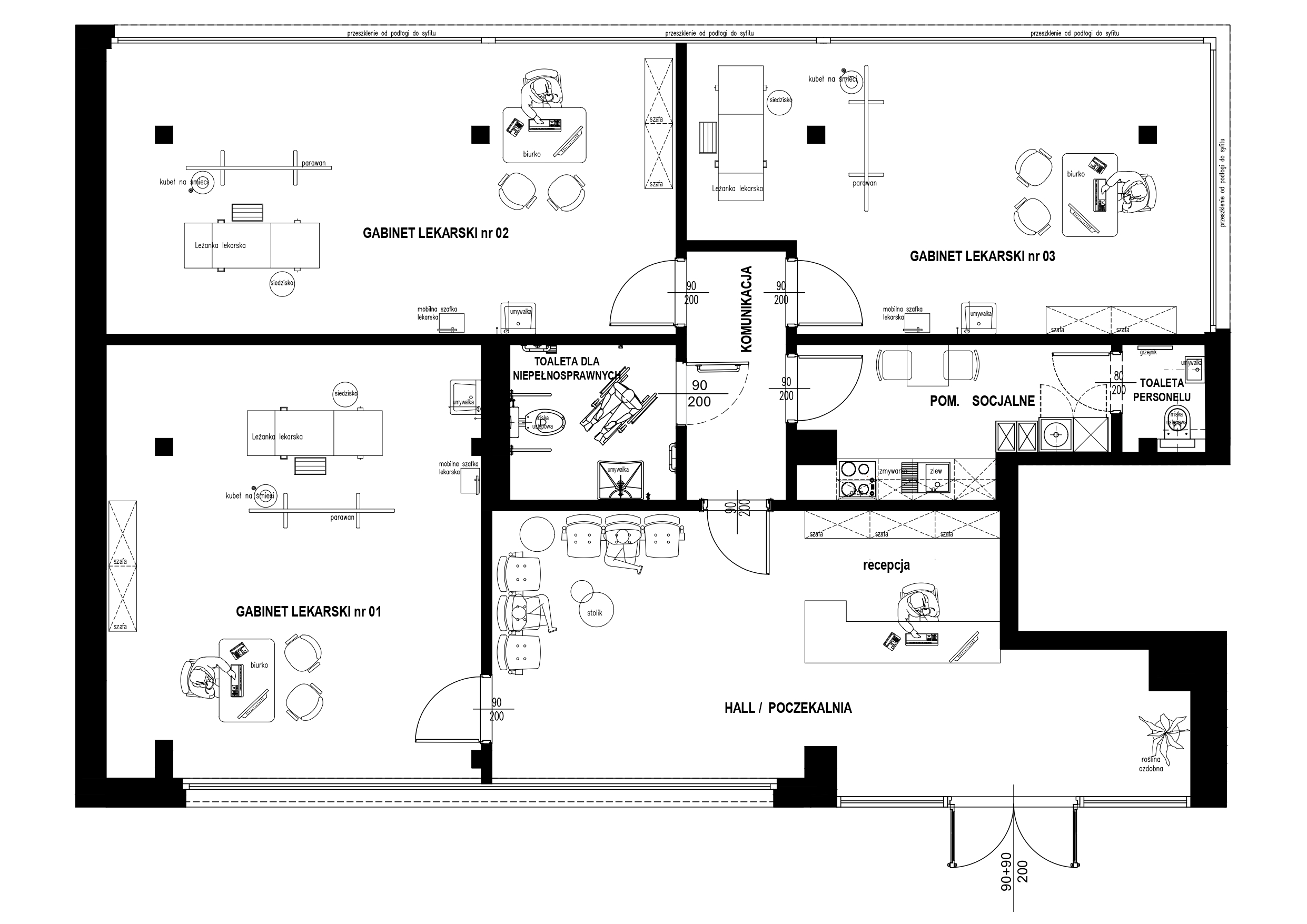 convert this floor plan into a realistic isometric 3d view of a full house show the space from an elevated angle with furniture walls and details visible design modern medical offices with accompanying room use the same furniture as shows on the plan do not change the orientation of the floorplan