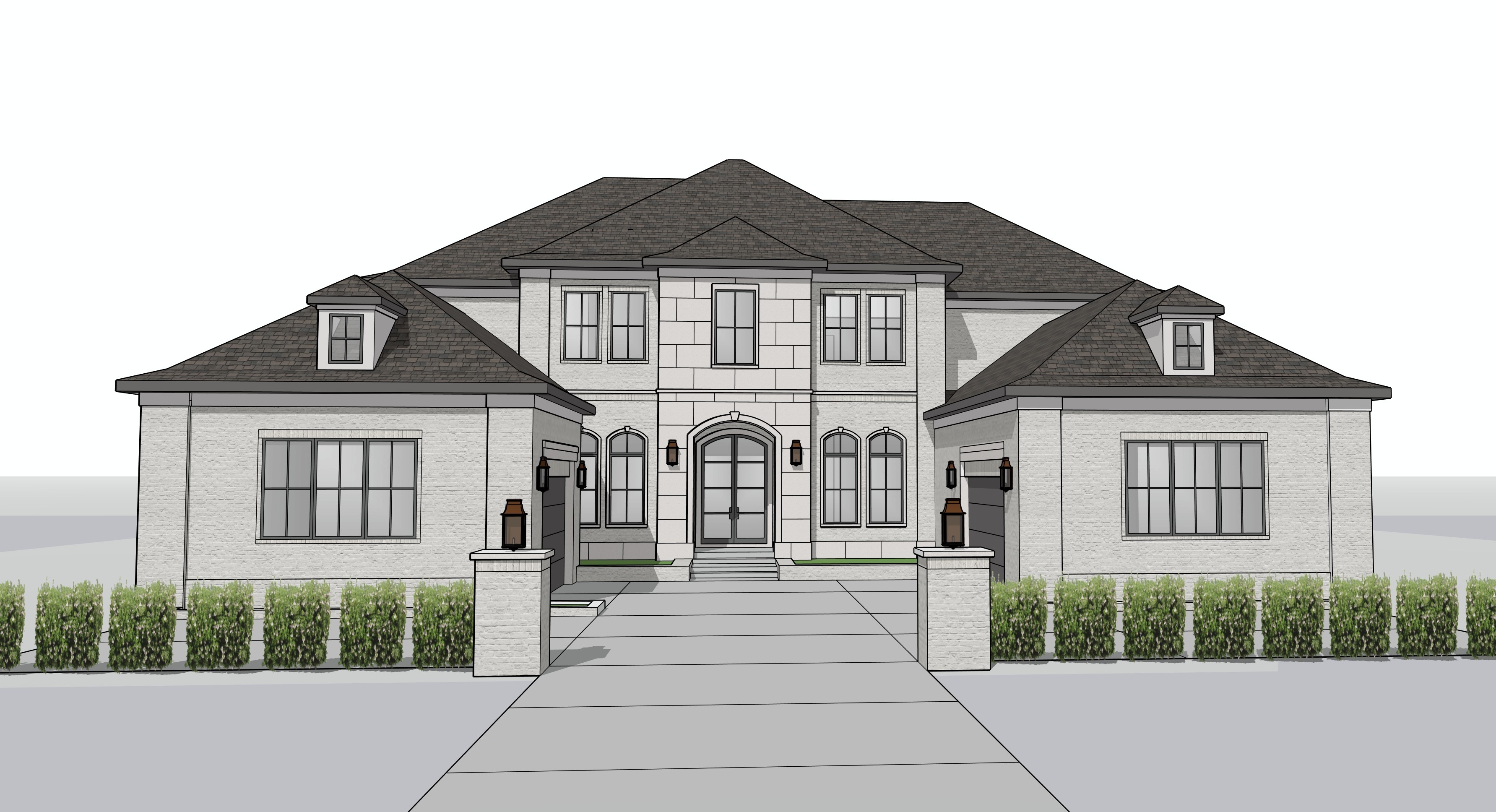 estate setting afternoon lighting maintain features and textures of house sand colored brick at house with slab limestone block at entrance