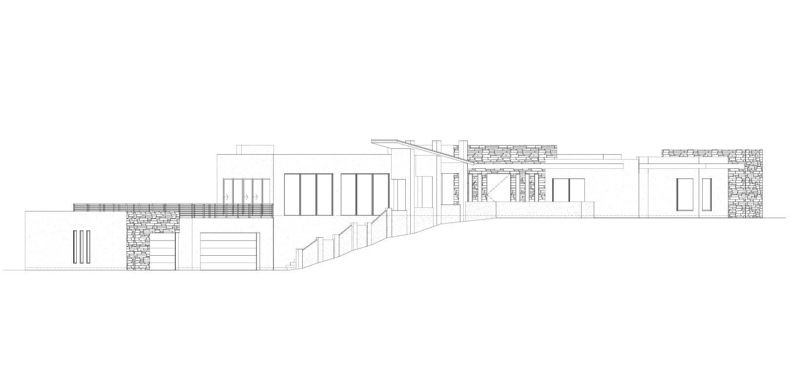 contemporary home with cream stucco as primary and a taupe medium brown as secondary stucco color shale ledgestone in medium tones new mexico landscape