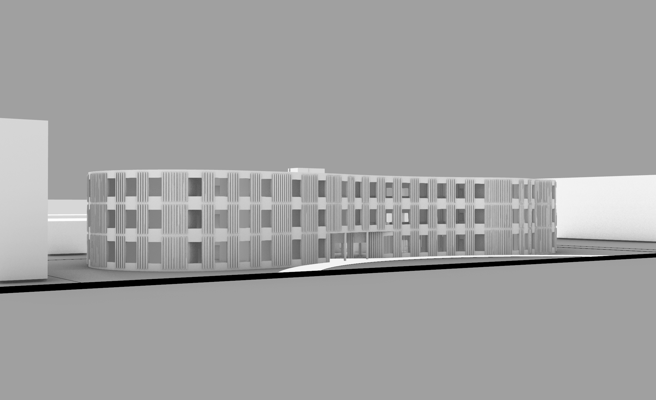 this is meant to be a childrens school building located in downtown philadelphia note the white driveway should be brick pavers and the other ground area should be grass except for the black asphault street use neutral colors on the facade