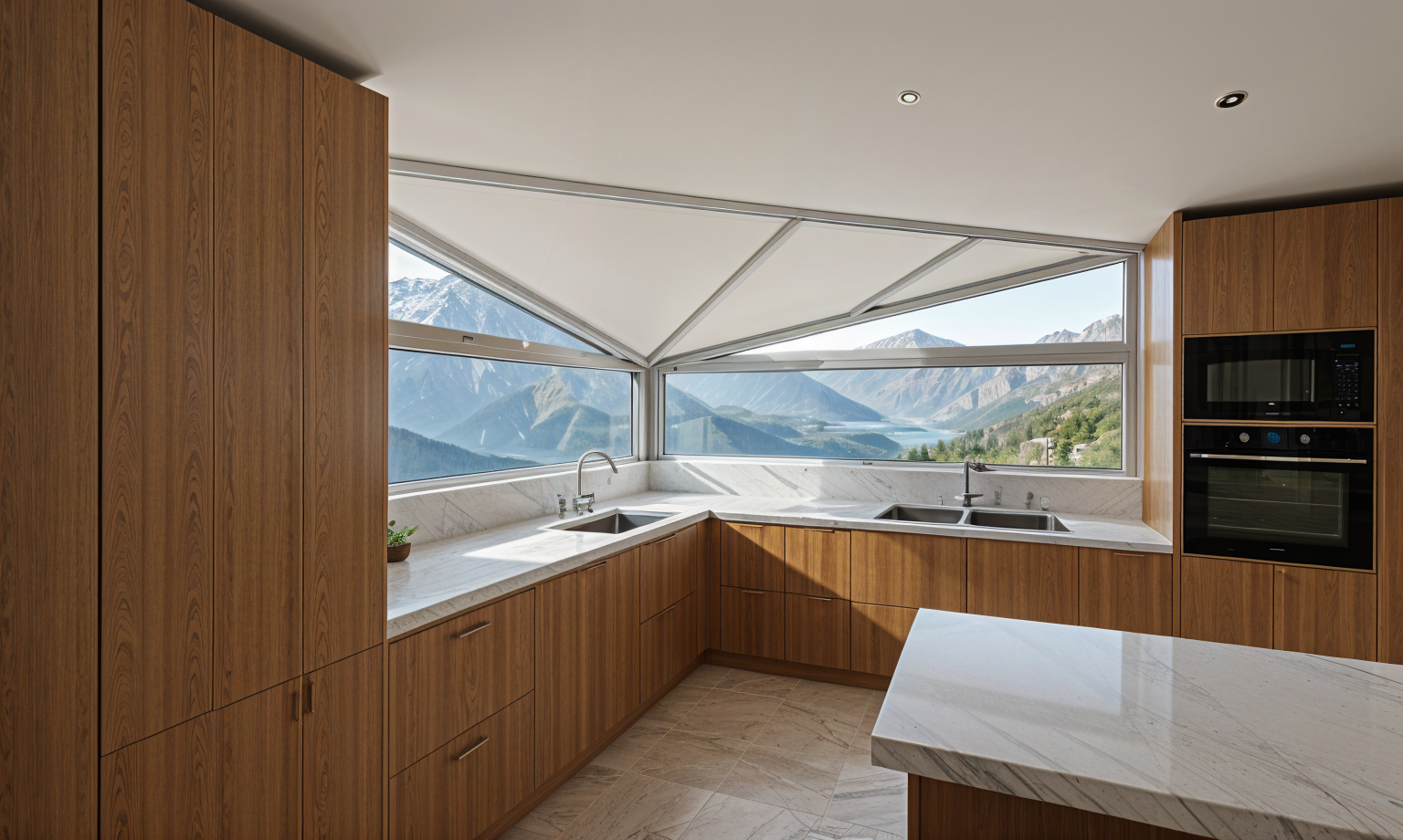 this elevation should have two different wood finishes all of the yellow shaded areas are to be light colored buckhorn cedar siding the green shaded portion is to be redwood siding and shakes all of the windows should have dark bronze frames and the rest should be white stucco also show a driveway leading to the garage door and put fir trees in the background
