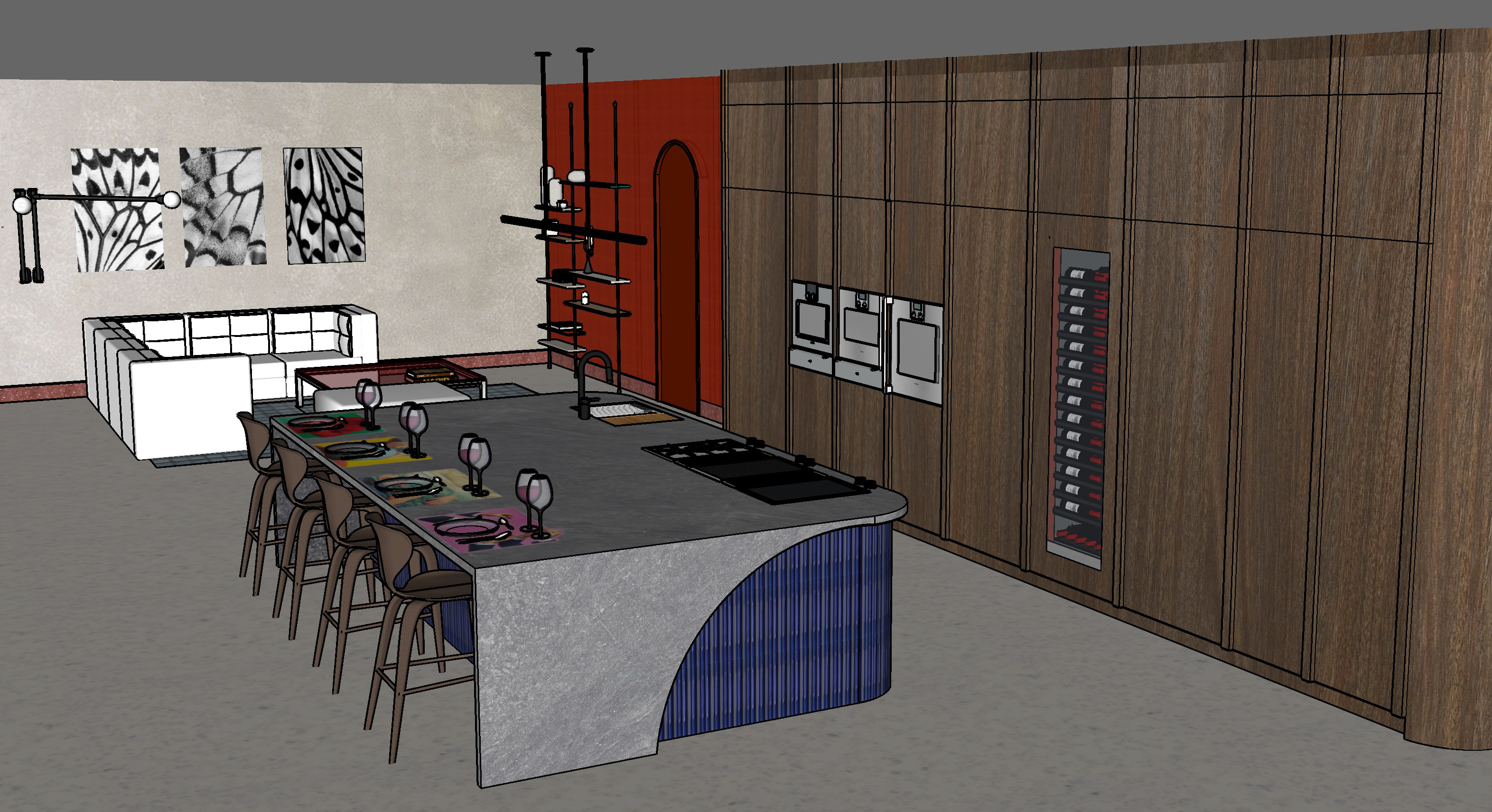 create a hyper realistic architectural render based exactly on the reference image provided do not change the design proportions layout shapes materials colors or composition in any way the image must remain identical to the reference only enhance it by converting the drawing into a photorealistic render preserve every element exactly as shown same geometry same furniture placement same wall shapes same openings same lighting positions and same material colors add realistic materials natural lighting shadows reflections and textures while keeping the original design untouched maintain the same camera angle and perspective as the reference image ultra realistic interior render architectural visualization quality soft natural lighting global illumination detailed textures high resolution professional interior photography style 4k render