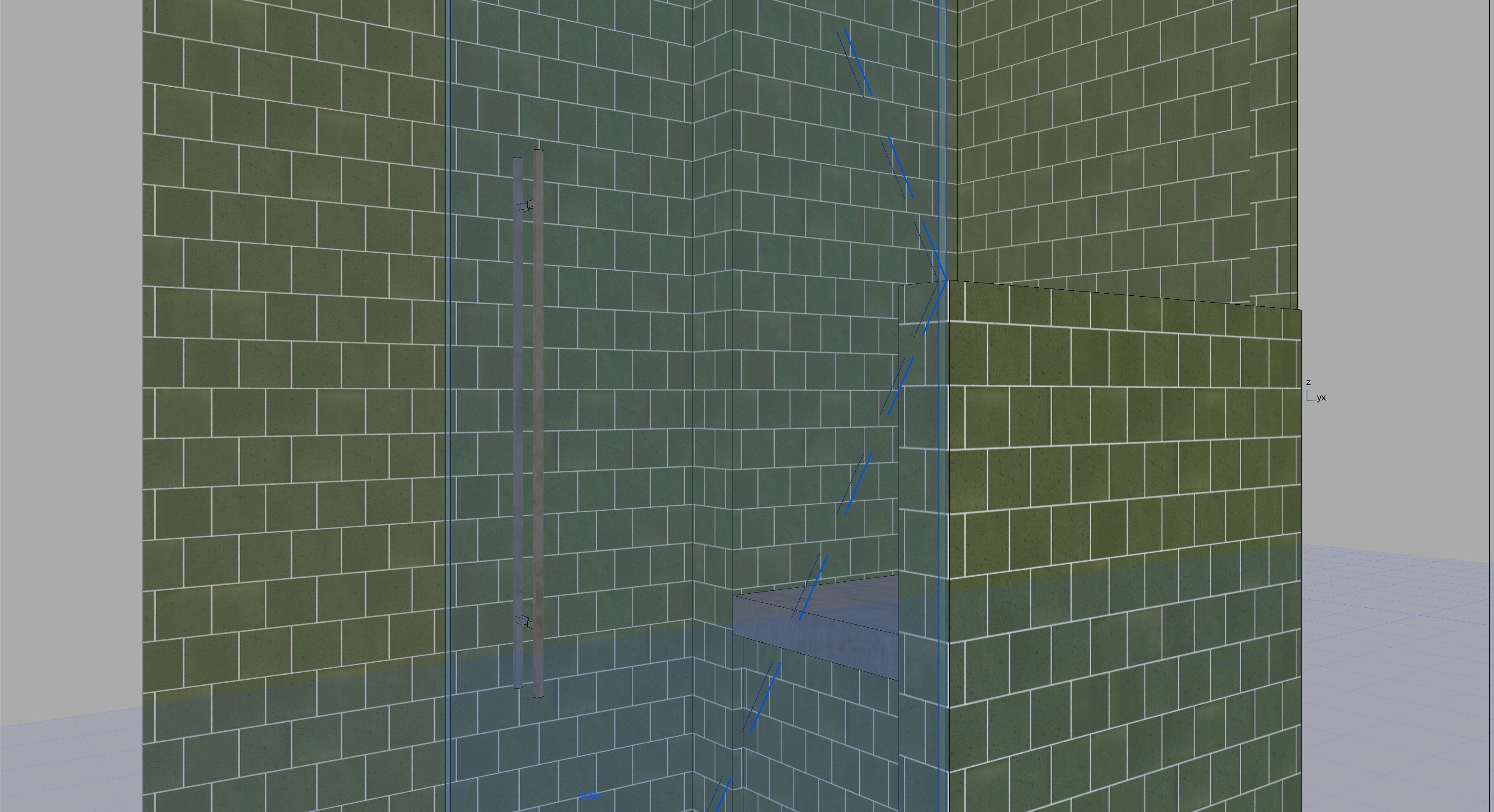 soft lighting shower bench top is white quartz shower door handle is antique brass