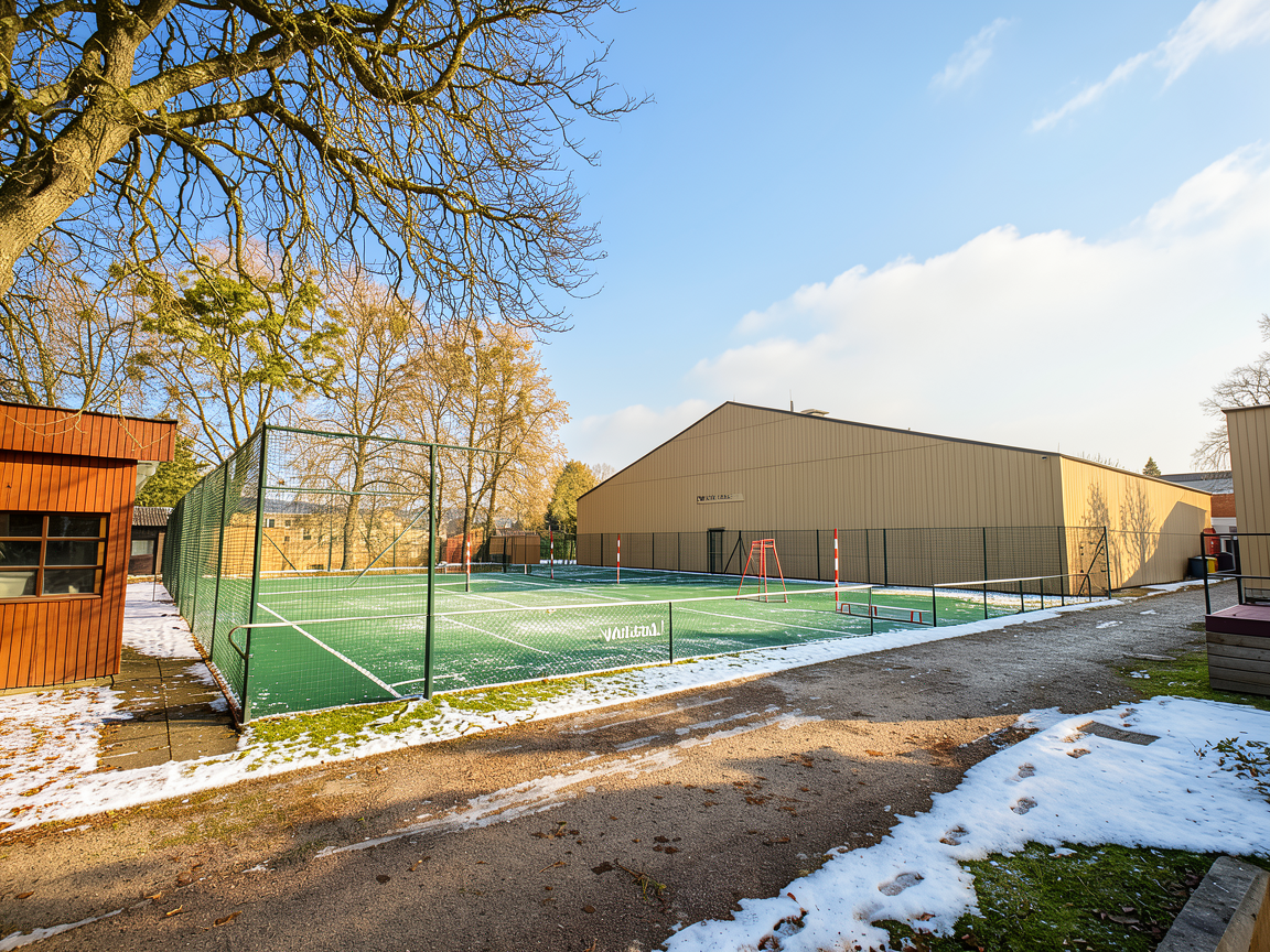 put in two padel courts along the hall facade summer