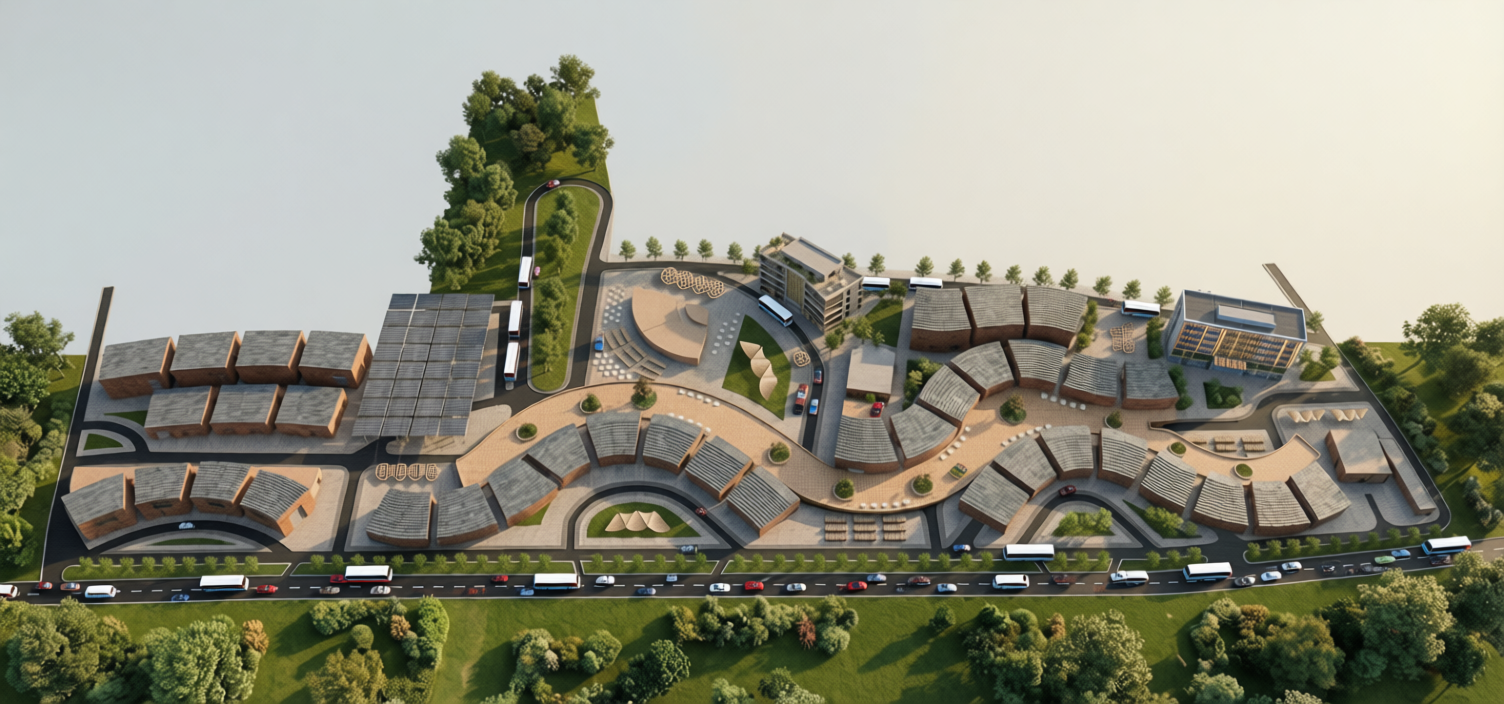 archsynth prompt vehicles only on dark gray asphalt strict placement muted colours mode edit insert base image uploaded cityscape global rule critical this is a pure insertion task the base image must remain pixel identical everywhere except for the newly inserted vehicles no other modifications are allowed vehicles must be placed only on dark gray asphalt roads absolutely nowhere else vehicles cars insert cars only on dark gray asphalt roads do not place cars on lighter asphalt roads sidewalks plazas green areas or buildings all streets are double lane roads scatter cars sparingly for realistic traffic cars must follow lane direction and curvature cars must match the scene s lighting shadows and perspective car colours should be muted natural blending with the environment buses insert buses only on the front main road dark gray asphalt do not place buses anywhere else limit to a small number of buses 2 3 buses must be correctly scaled aligned to lanes and match lighting and shadows bus colours should also be muted natural absolute hard constraints do not add remove modify or replace any existing pixels outside the vehicles do not add or alter people buildings pavements landscaping water or any other object do not change lighting shadows colours materials or camera perspective outside the vehicles vehicles must be placed strictly on dark gray asphalt roads only no vehicles elsewhere under any circumstances result the final image should be identical to the base image with sparse cars on dark gray asphalt roads only buses only on the front main road vehicles coloured muted natural to blend with the scene no other changes anywhere else