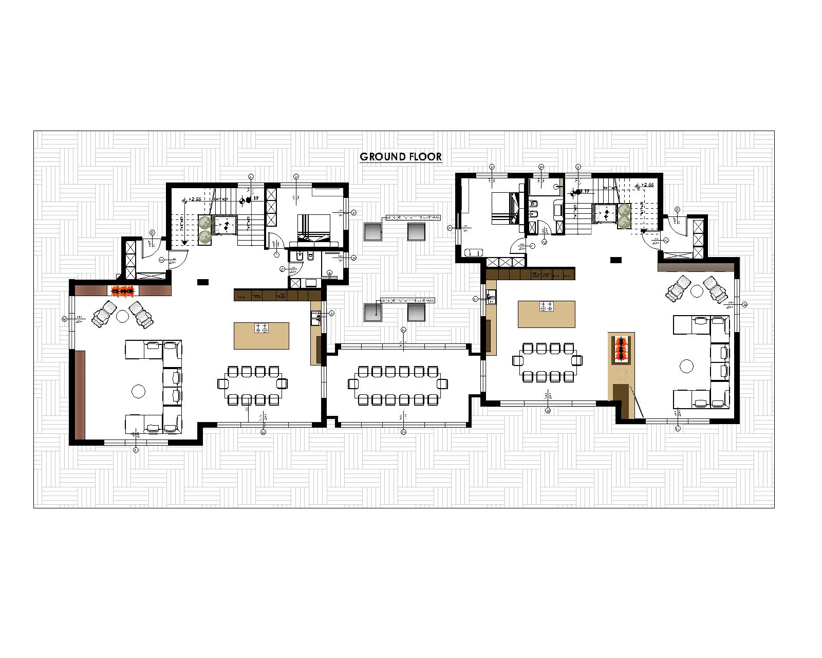 convert this floor plan into a architectural isometric 3d view of a full house show the space from an elevated angle with furniture walls and details visible use the same furniture as shows on the plan do not change the orientation of the floorplan