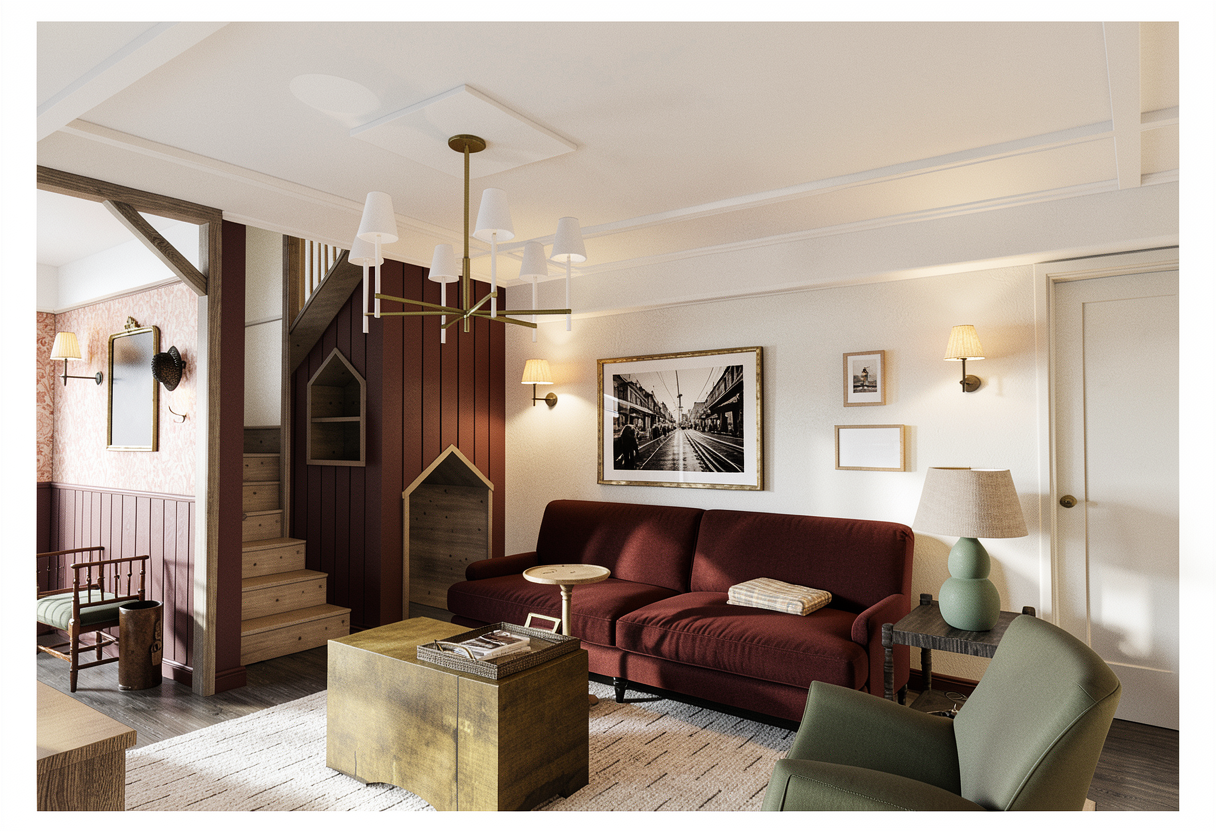 make a photo realistic render use natural warm light add typical office panelled ceiling with the general light on add accent lighting behind the actual tv not the beige panel be very precise with the render don t add any new objects add 3 people in wheelchairs watching tv keep the curtains across the whole wall behind the tv be very precise don t add any more objects highlight the plant