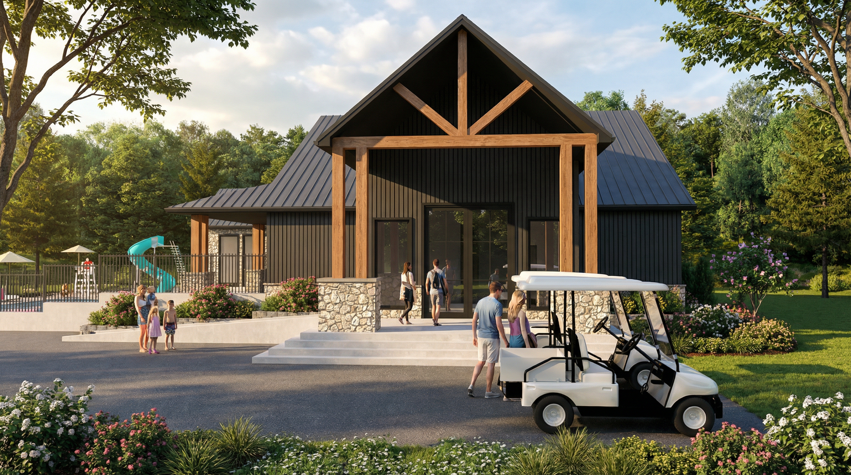 exterior shot using the reference image s exact render style placement camera angle distance to the viewer colour pallette distance to camera etc i want you to render the input image elevation with all its materials trimwork window sizes rooflines details in exact proportion to the reference image same time of day same shadows