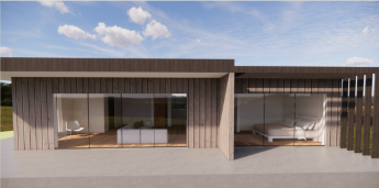 enhance this and put exterior lighting make it nighttime with trees in the background