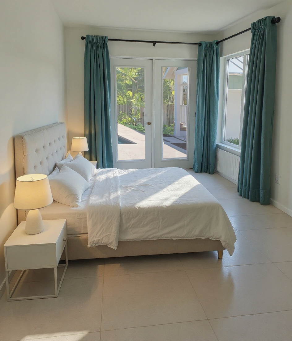 cream area rug under bed