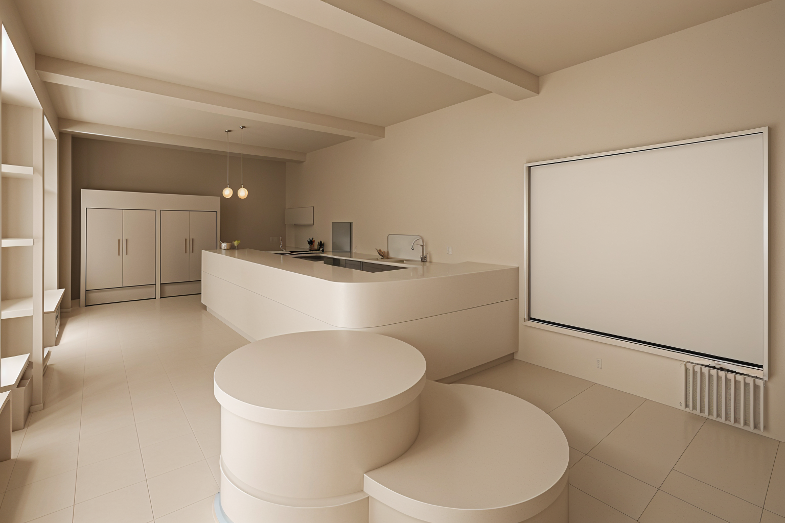 please put it in a living room with a window at the back and a dining table at the back with chairs with day soft light
