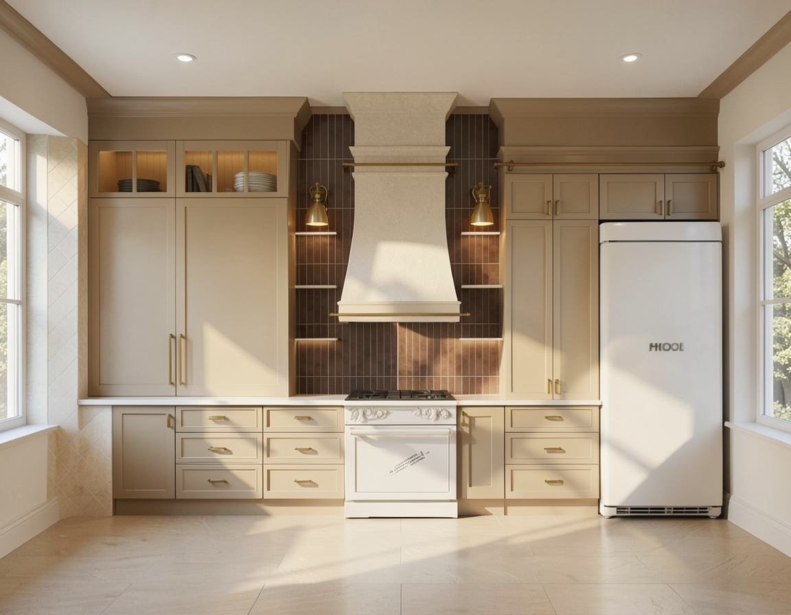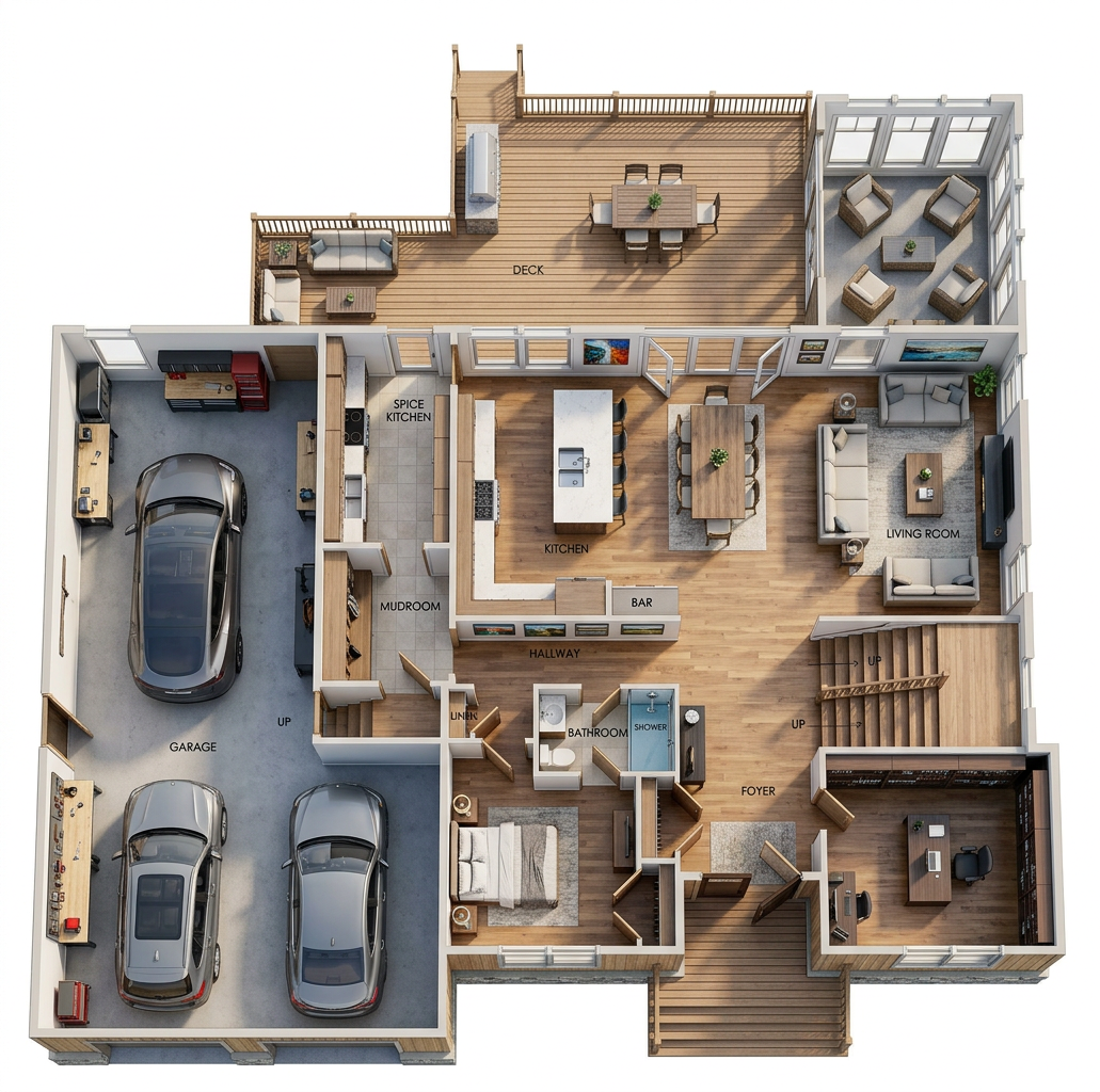 improve realism warm summer light no bloom replace white background with trees keep all design materials colors and composition unchanged