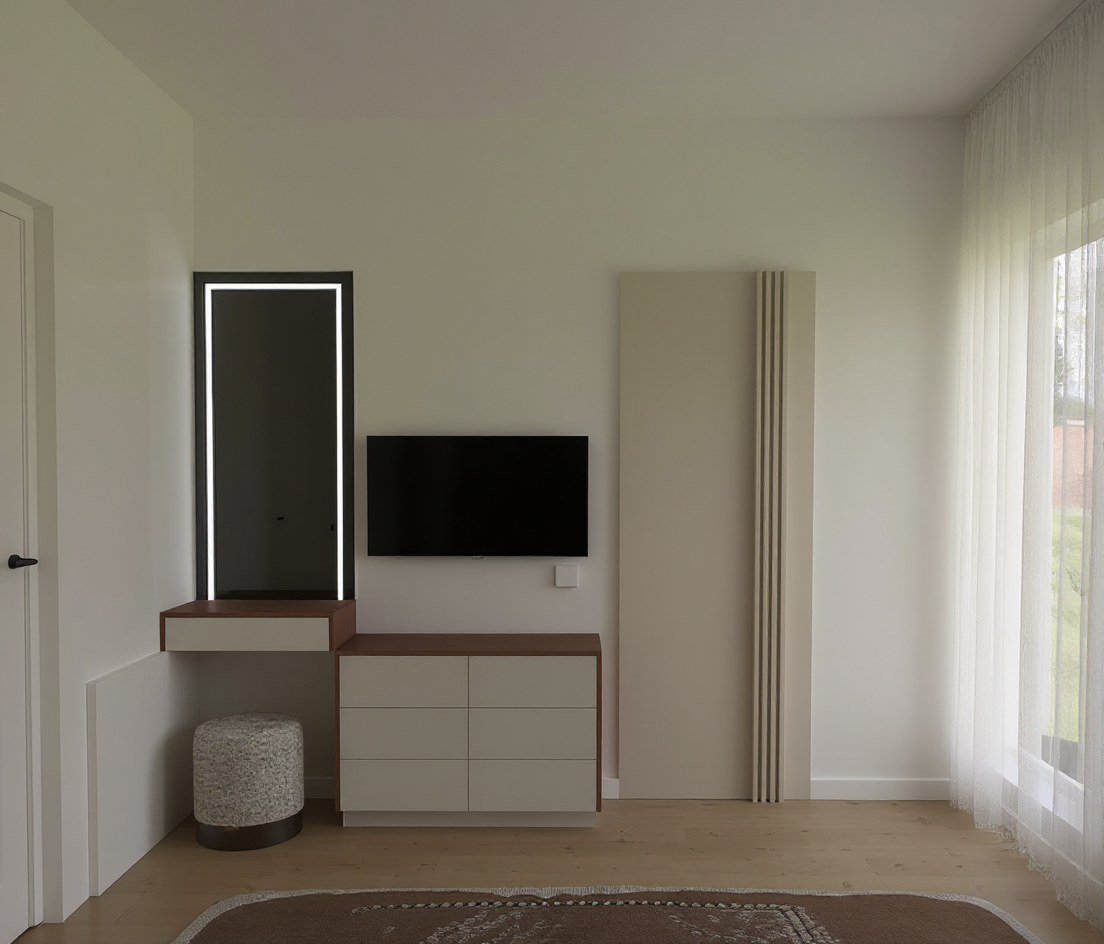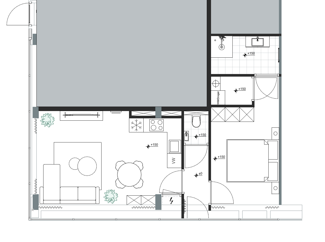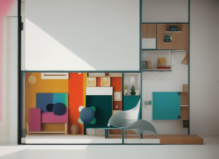interior shot make a floorplan with colors and 3d walls and objects architecture