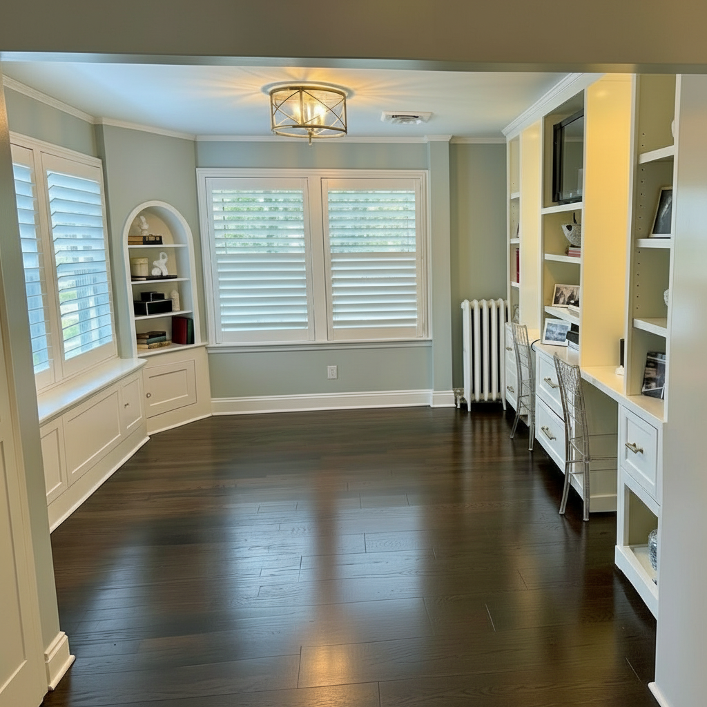 change the paint on the bookshelf on the right wall to a dark green