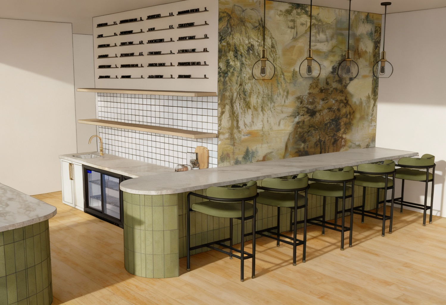 architecture rendering perspective view of city of pescara with sea in the back