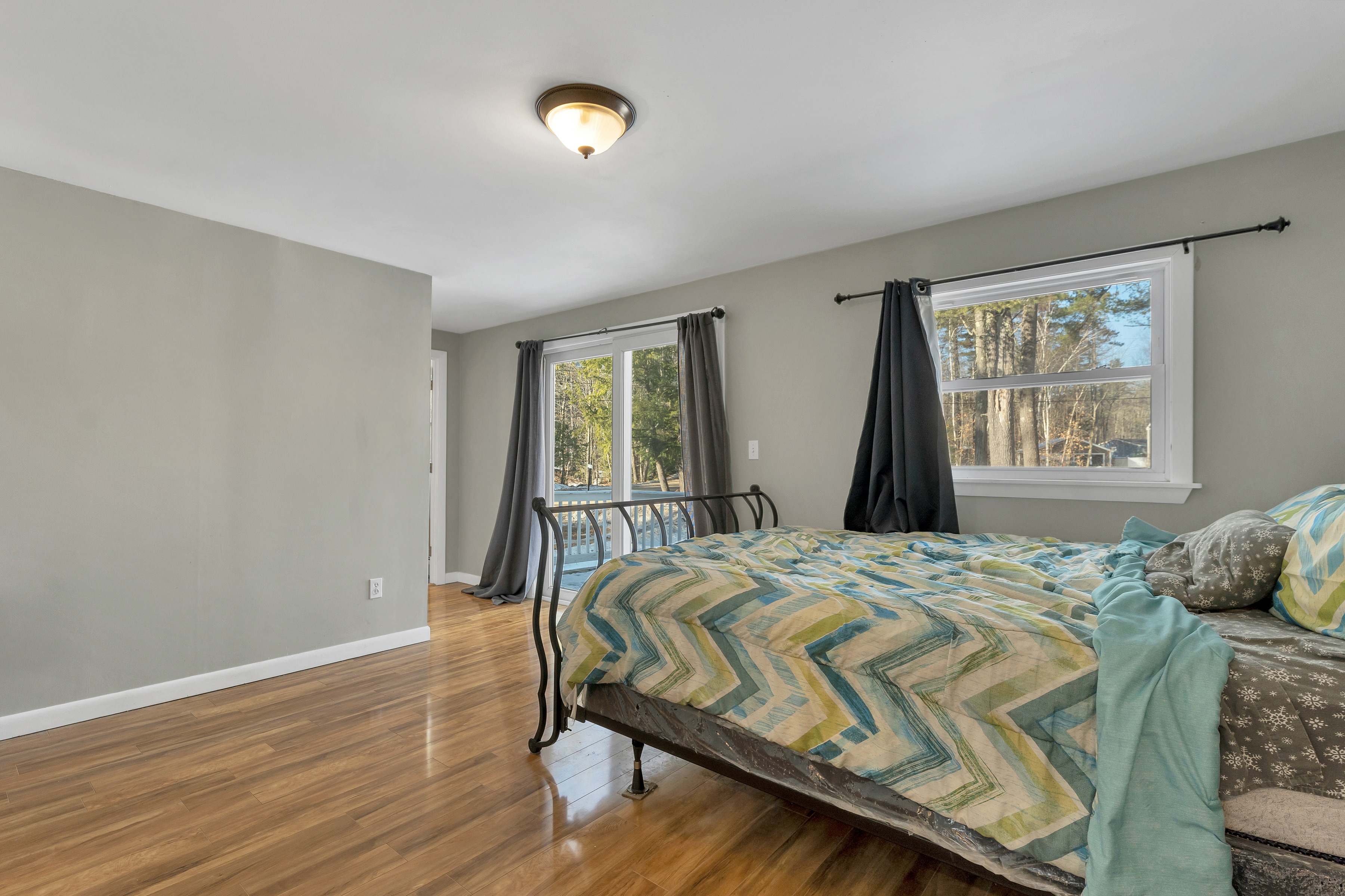 a soft modern comforter and bedding with soft curtains