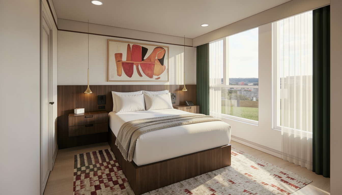add soft hotel bedding and a solid color throw pillow
