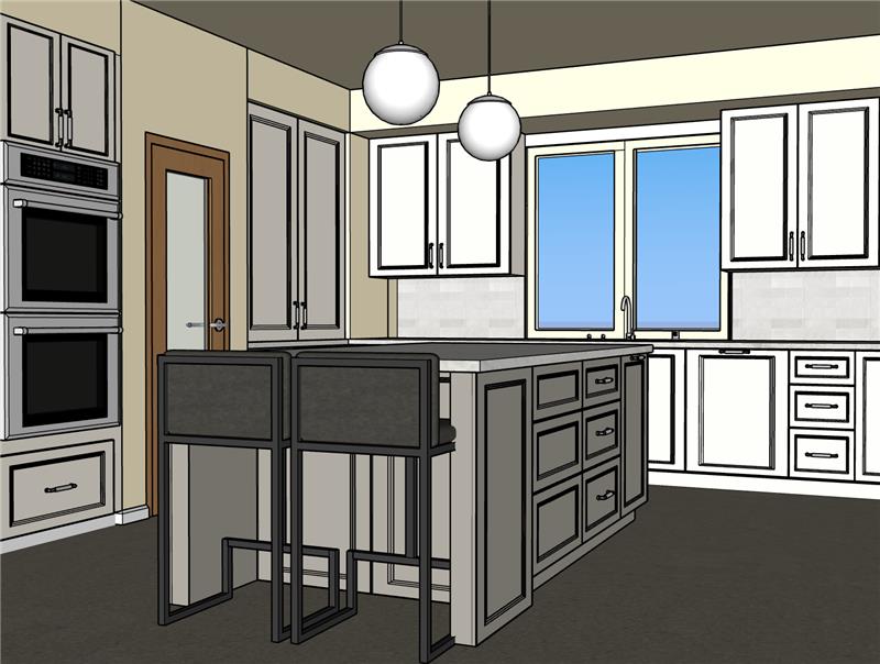 contemporary interior shot the floor is concrete white cabinets on the outside and warm grey cabinets for the island architecture