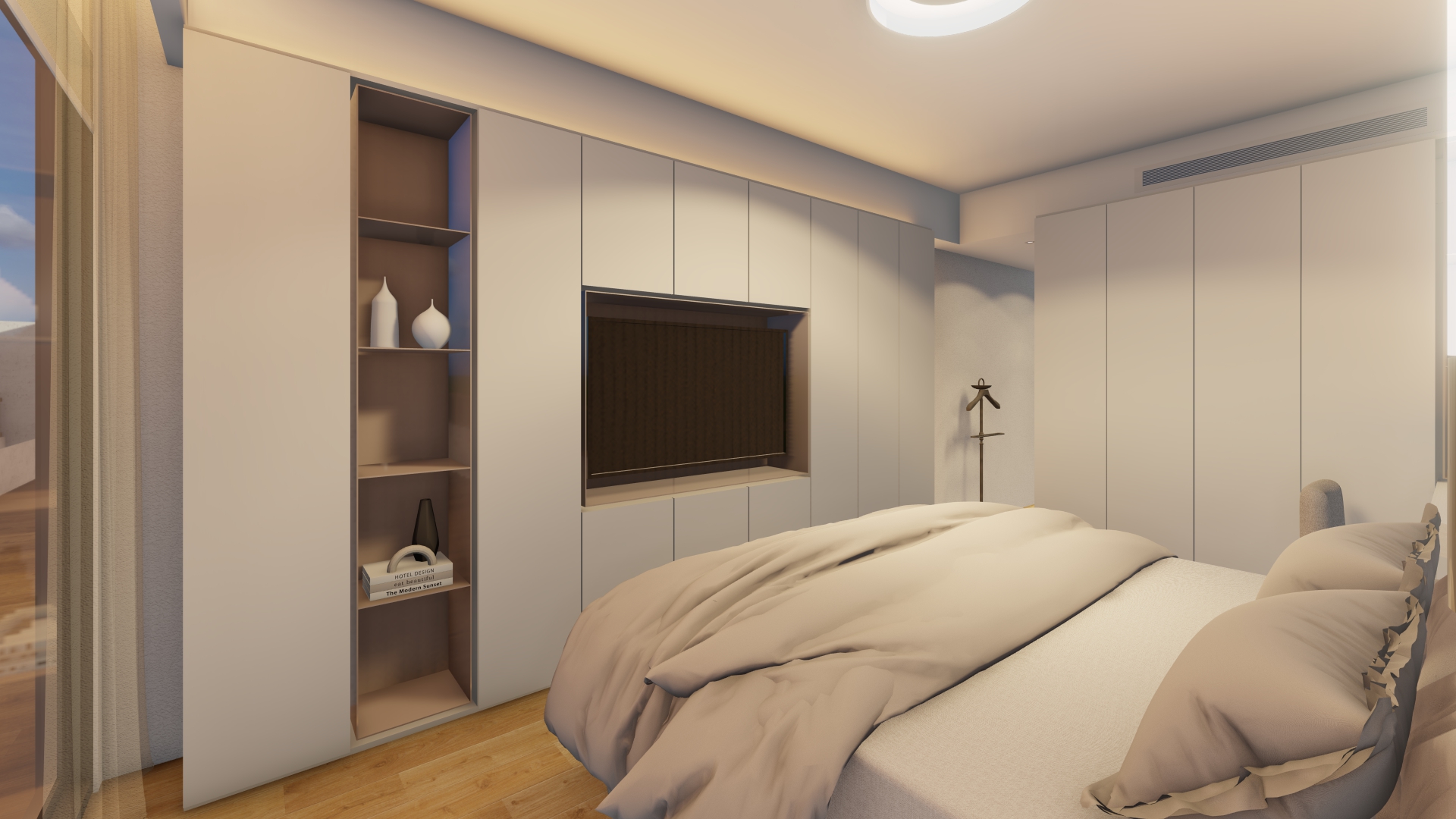 render this image in a realistic style maintaining the exact same composition furnishings lightning and design without adding or removing elements the library is not made of wood it is painted in old pink soft