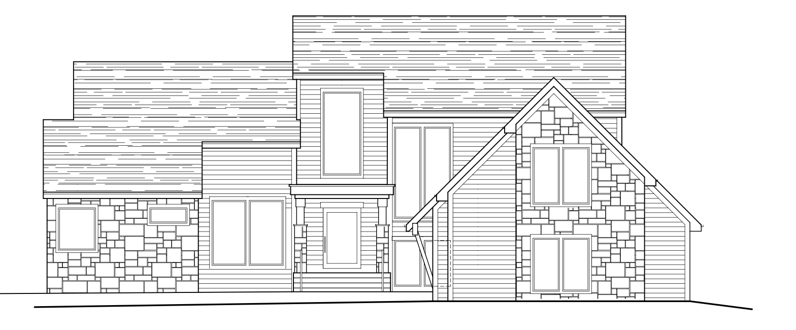 modern residential house elegant architectural design with a blend of natural materials and colors the exterior features black shingles and black trim the stone fa ade is adorned with various shades of beige and light gray for a natural rugged look large windows invite natural light and have sleek black frames the front door is a rich dark mahogany wood a well manicured lawn surrounds the house with a few ornamental plants the atmosphere is peaceful and inviting under a clear blue sky with soft warm sunlight enhancing the colors