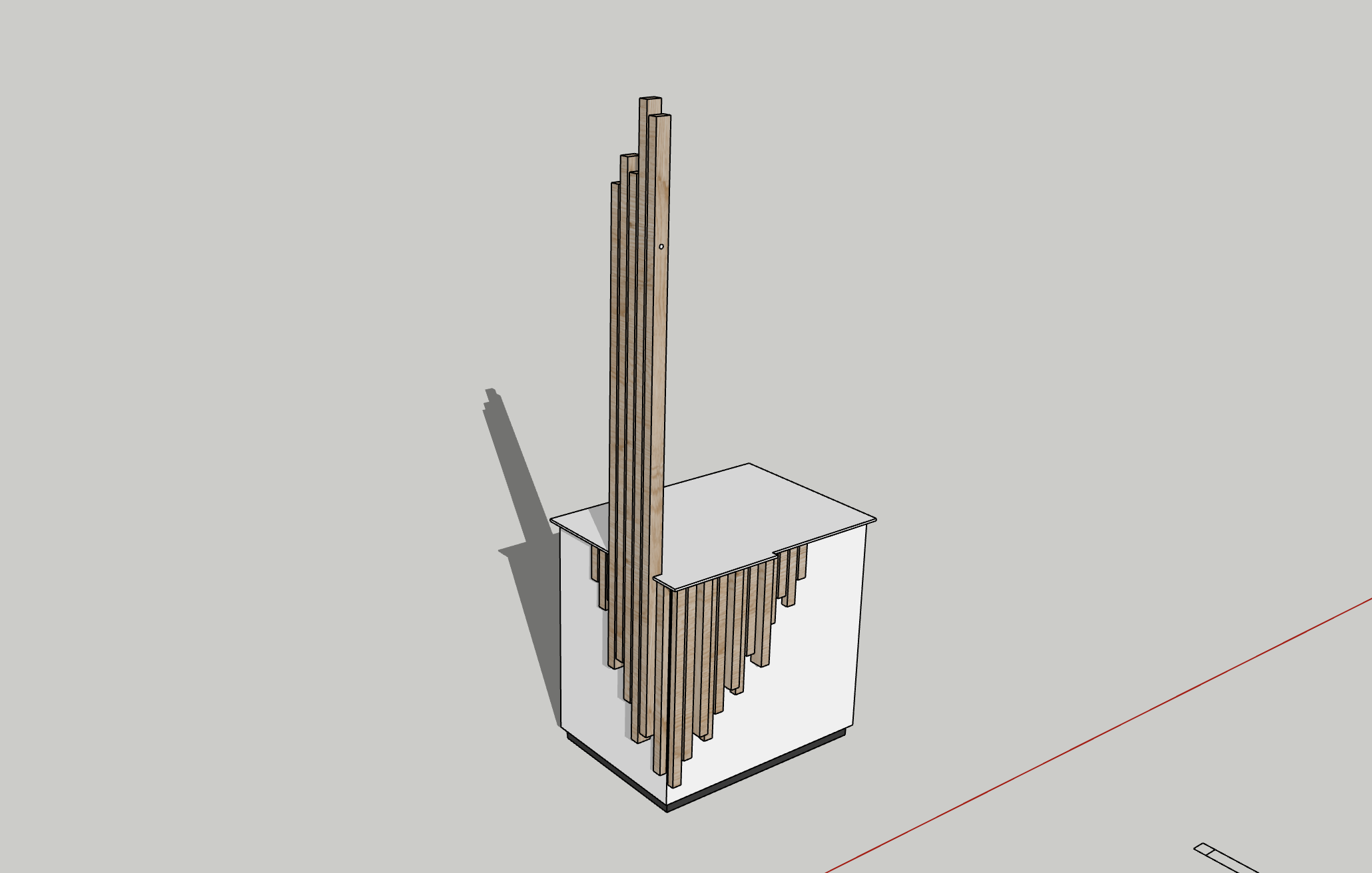fai pavimenti in piastrelle grigine grandi e una luce ambiente da farmacia il piano del banco in corian bianco i listelli laterali lunghi devono arrivare a toccare il soffitto del locale alto 270cm
