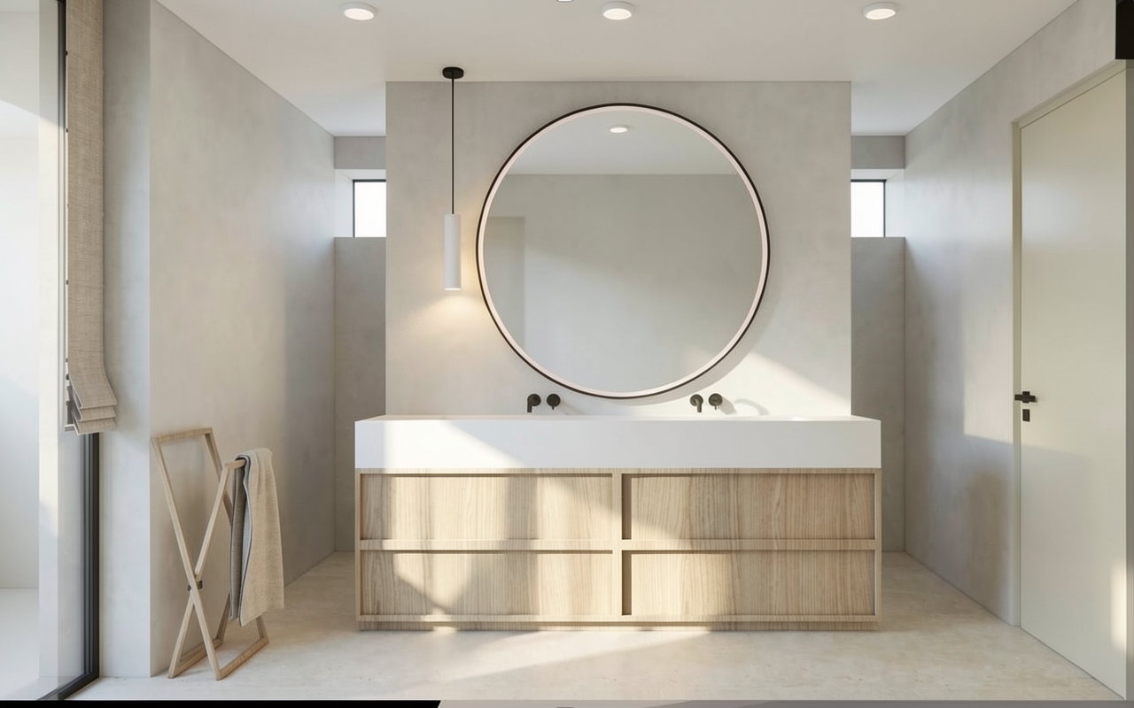 remove the ceiling light next to the mirror and install 2 wall lamps on the right and left sides of the mirror