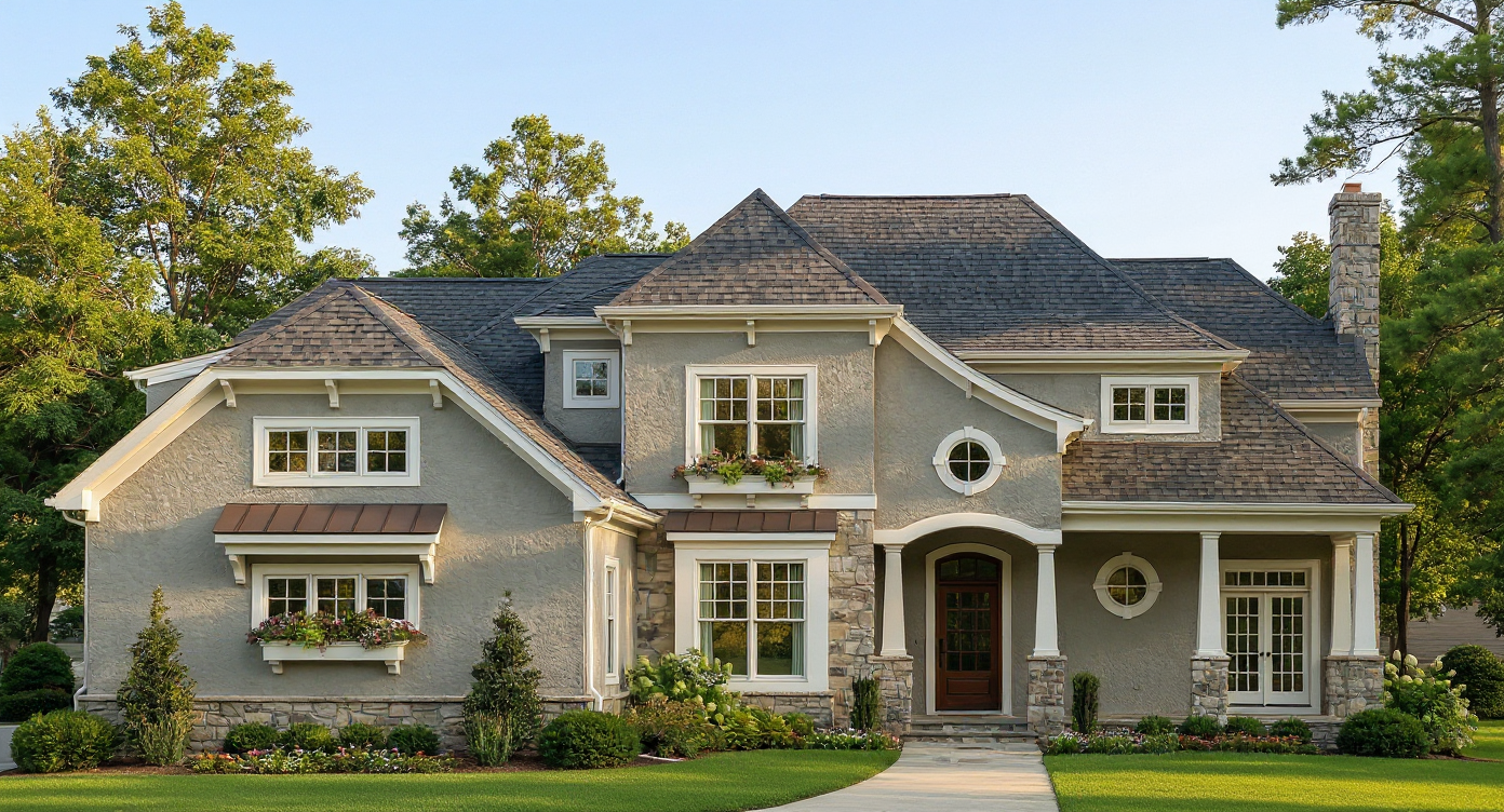 add white rocking chair and small table on front porch add small flowers in front of garage and porch