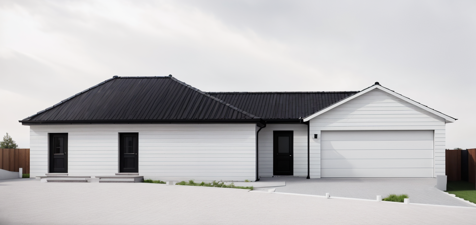 white walls and dark roof windows and doors and make the garage door match the roof color architecture