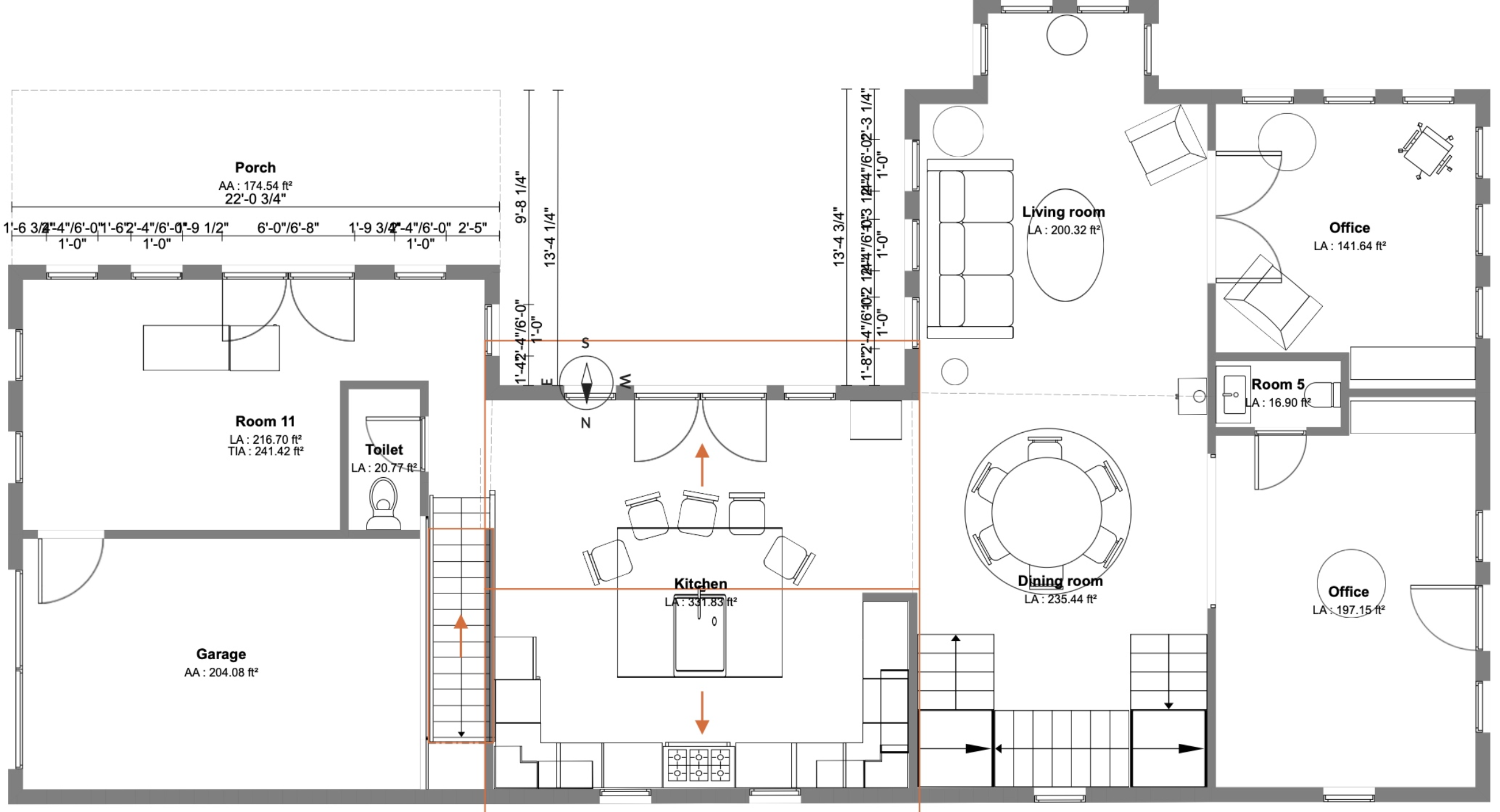 convert this floor plan into a realistic isometric 3d view of a full house show the space from an elevated angle with furniture walls and details visible use the style of modern english cottage the room next to the garage will contain outdoor gear for an alpine environment such as bikes skis etc use the same furniture as shows on the plan do not change the orientation of the floorplan