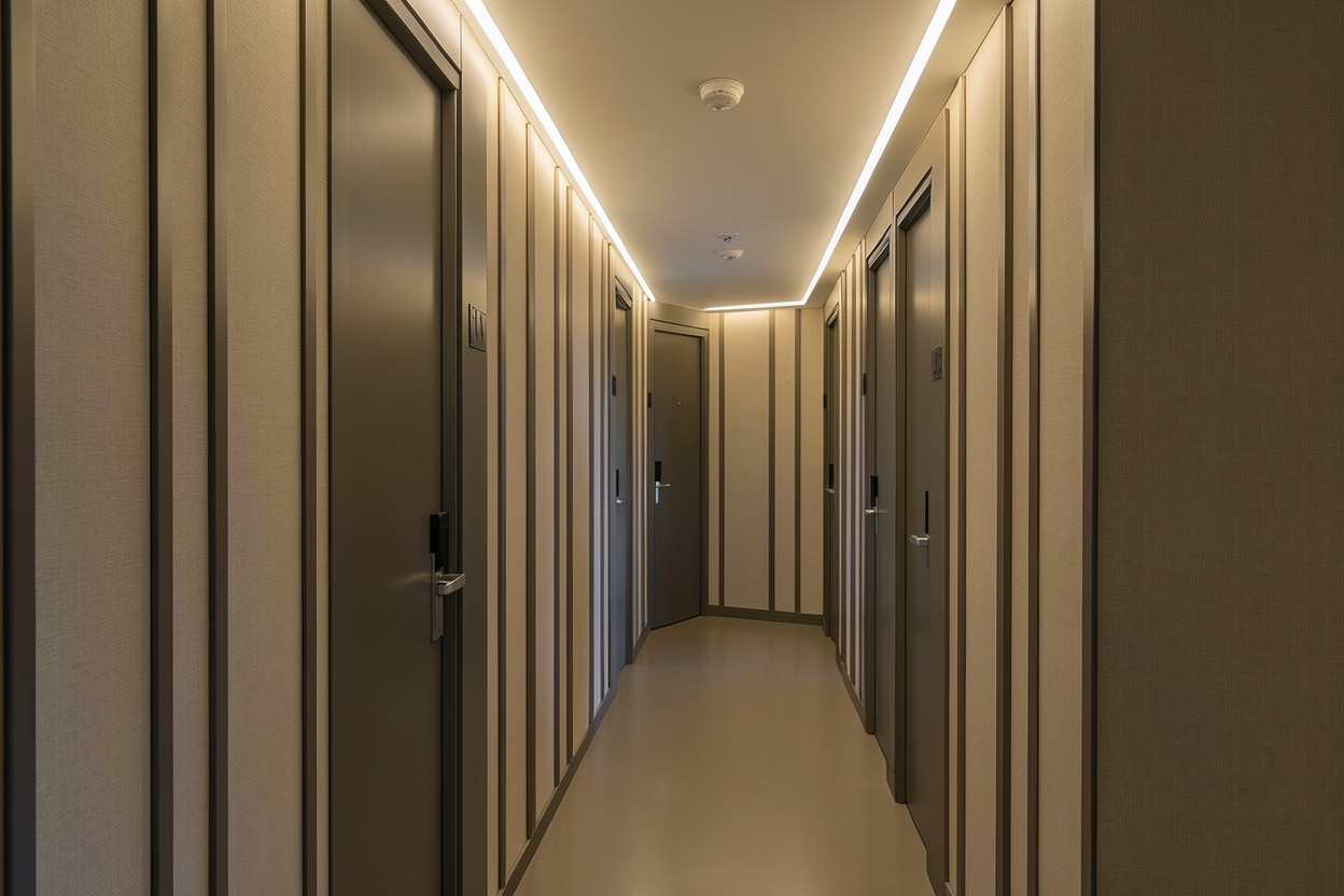 with lighting fixtures illuminates the area with cozy ambiance no lights inside the cabinet maintain colors light gray flooring dont change the cabinet color no handle for sliding cabinet maintain the design