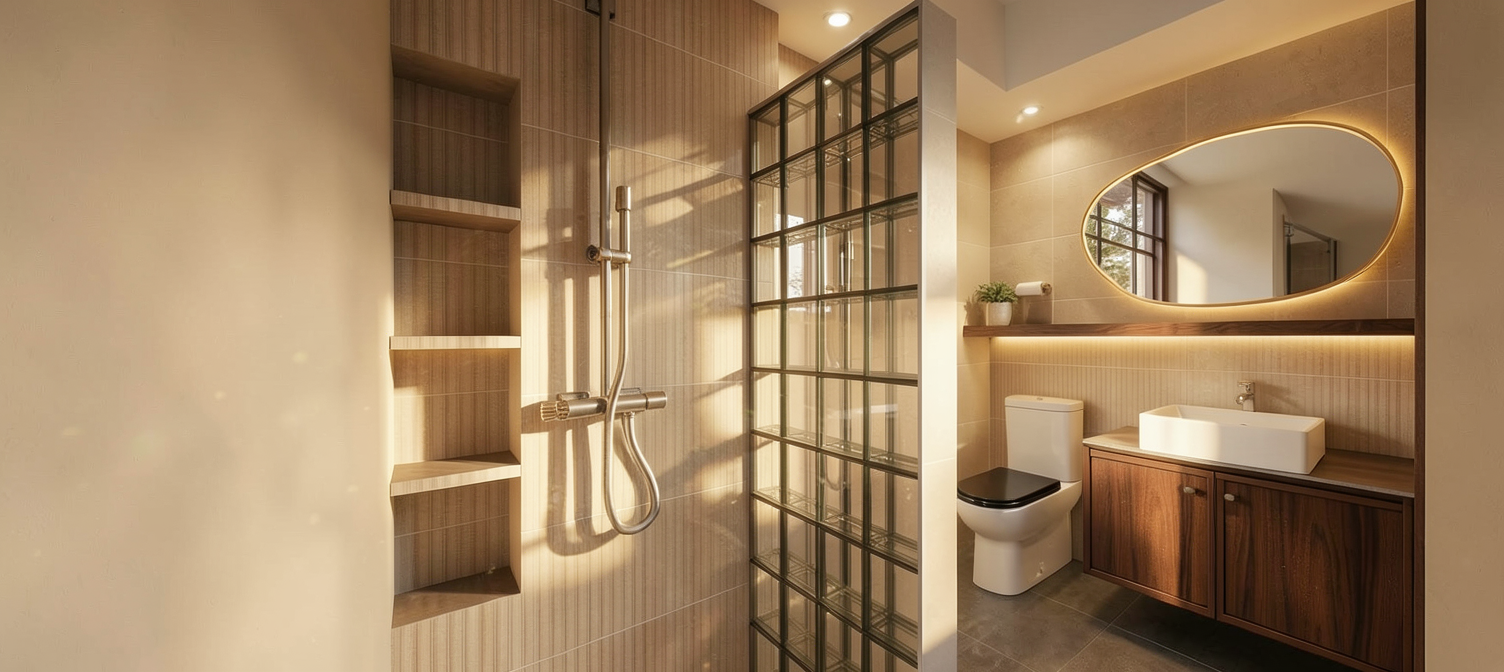 a hockey arena in a steel prefabricated building with a change area to one side clad with architectural ribbed brick steel siding keep geometry keep angle show an asphalt parking lot in front