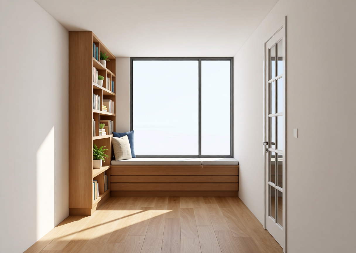 this is the kitchen of an elegant modernist house that we want to renovate the floor is beige burgundy stone the window frames are anthracite black and to the left of the window there s a glass fronted cabinet the cupboards are finished in white we want to create a bright natural atmosphere with plenty of light adding a touch of life through the window to the left you can see a large garden and beyond it you can glimpse the living room