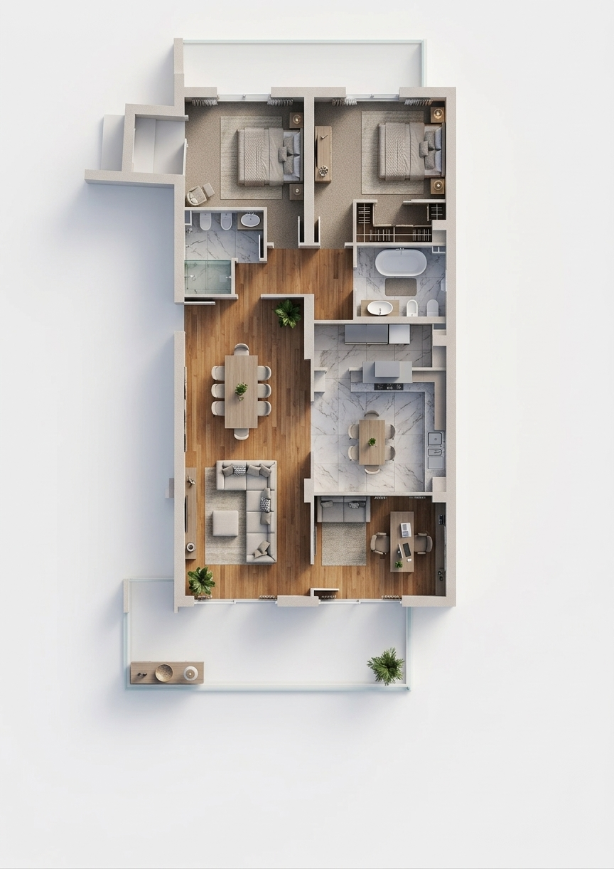convert this floor plan into a realistic isometric 3d view of a full house show the space from an elevated angle with furniture walls and details visible inserisci parquet camera da letto mantieni lo stile lussuoso use the same furniture as shows on the plan do not change the orientation of the floorplan