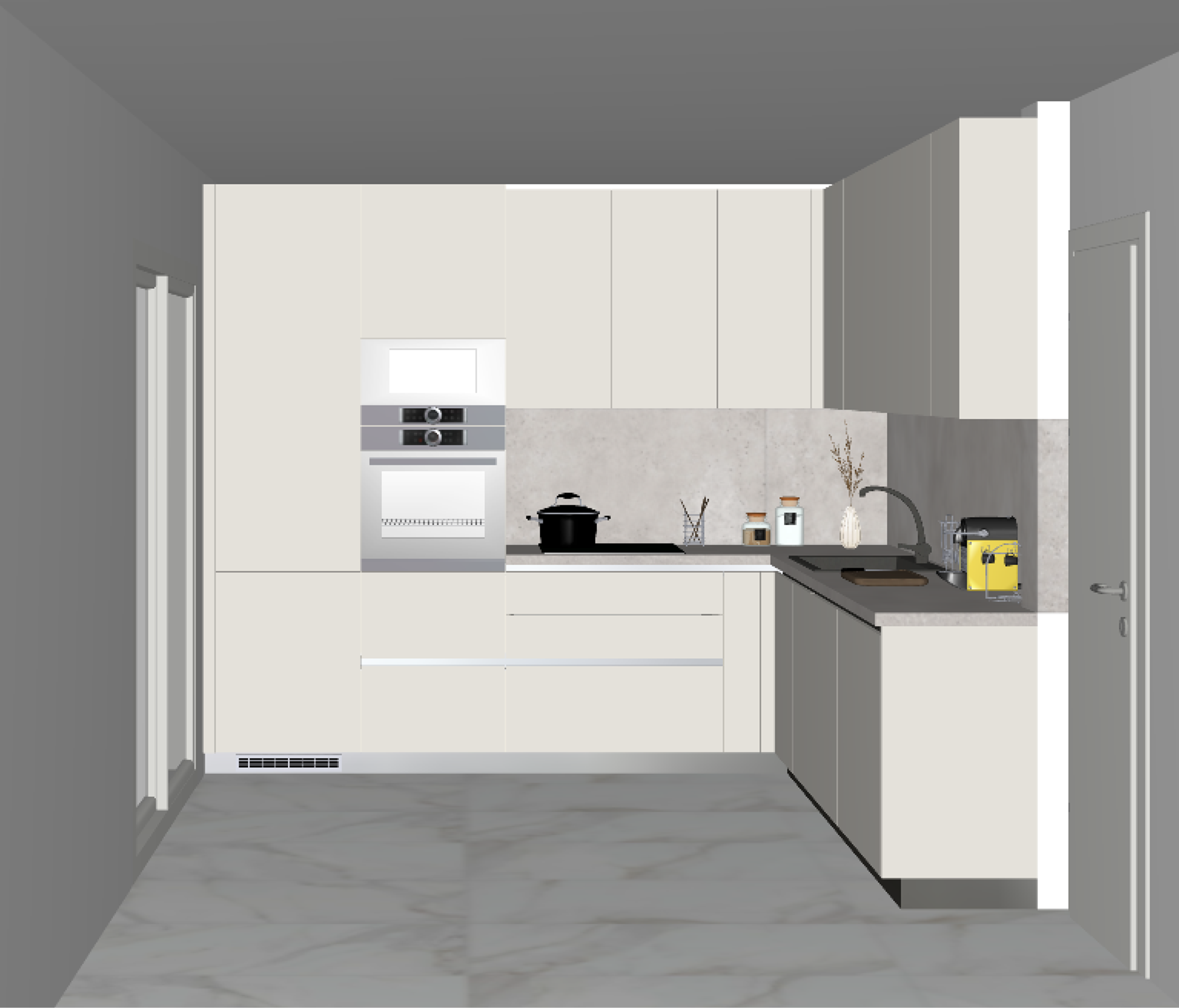 a super realistic render with some warm lights and a shade on the balcony door