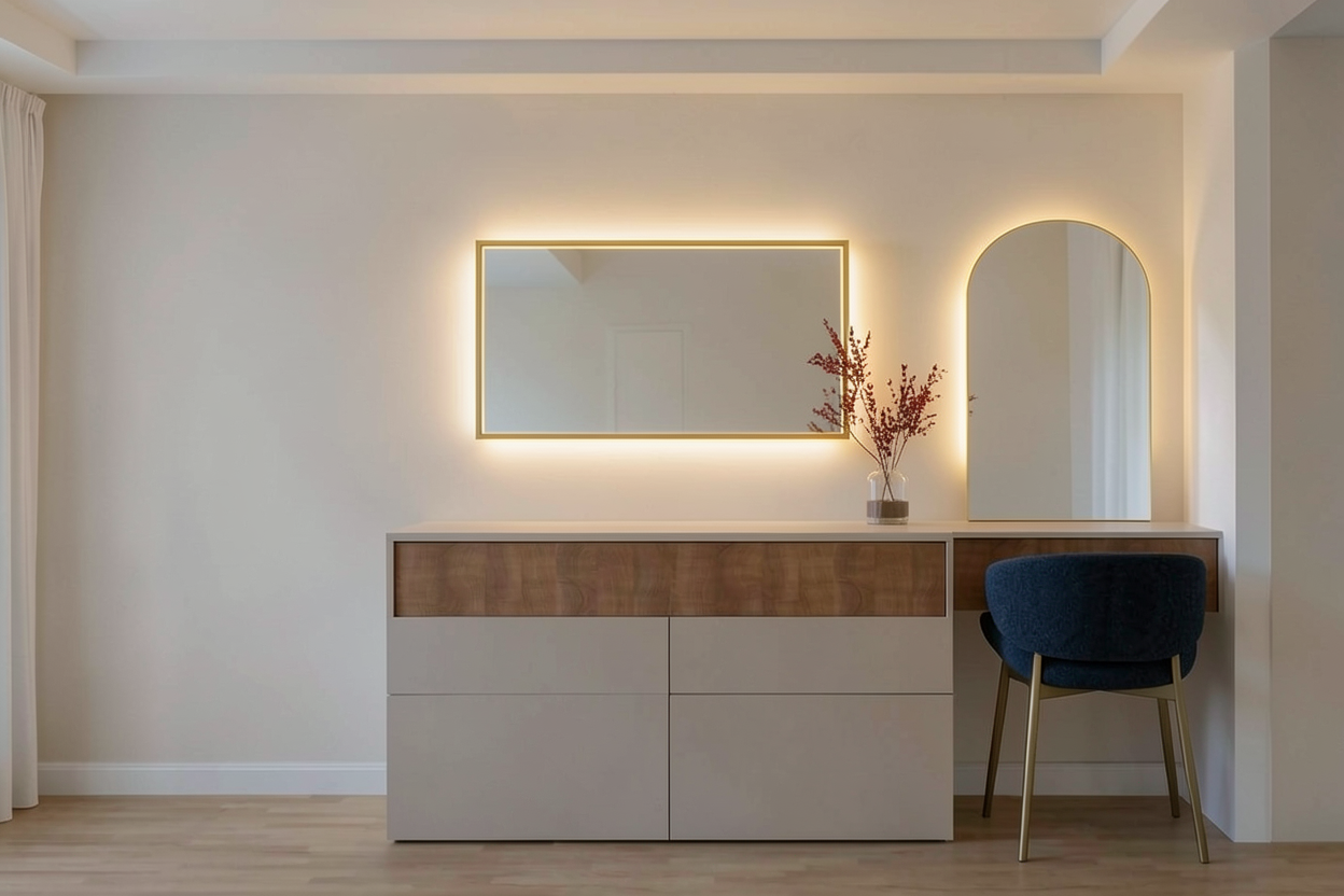 add narrow gold mirror over bench seat