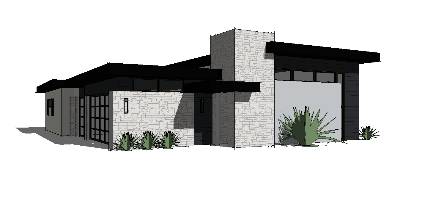 modernist exterior shot use the provided architectural model exactly as reference do not modify the architecture proportions or geometry material placement must match the design exactly lighting bright palm springs midday sun with neutral daylight color balance environment palm springs residential neighborhood with desert landscaping agave plants gravel ground cover concrete driveway curb and asphalt street sky deep blue desert sky with thin wispy cirrus clouds camera professional architectural real estate photograph full frame dslr 35mm lens f 8 iso 100 rendering style ultra photorealistic architectural photography with realistic materials and subtle imperfections architecture