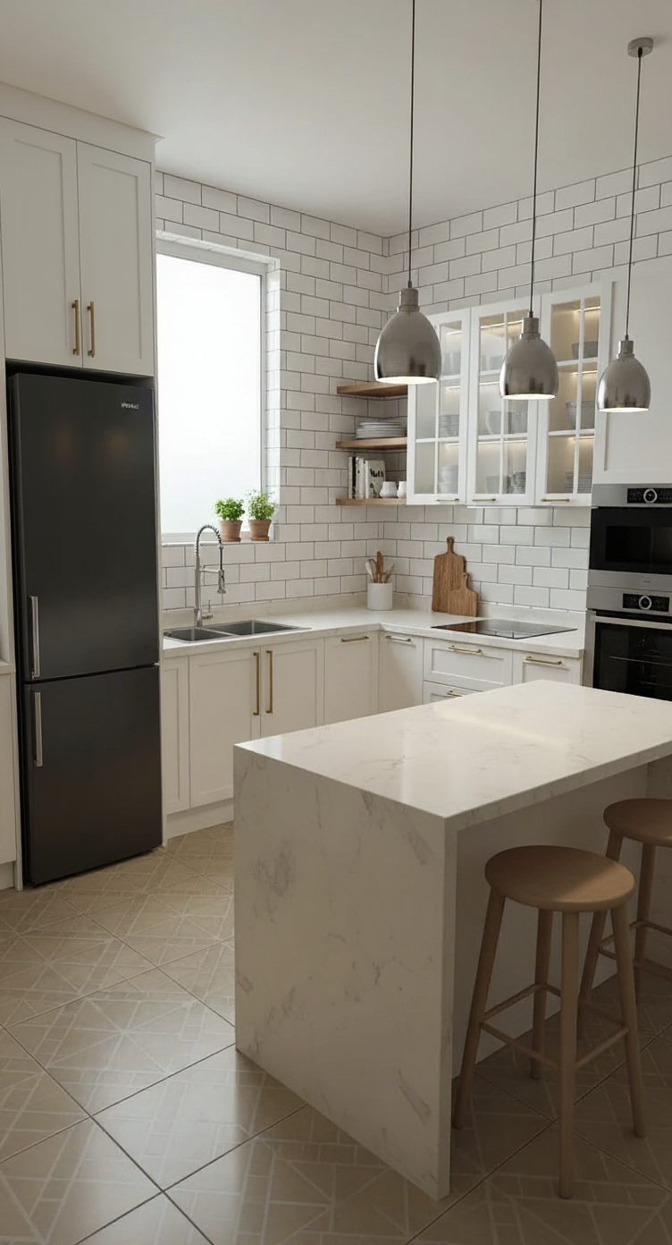 s ponha um armario de piso a teto esquerda da janela sem roubar o espa o da janela e da pia