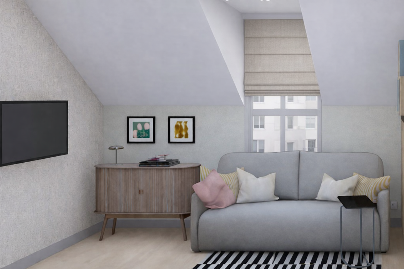 modernist interior shot ultra photorealistic architectural interior rendering of the provided image preserve exact geometry layout proportions camera angle materials and colors do not redesign do not move or add anything architecture