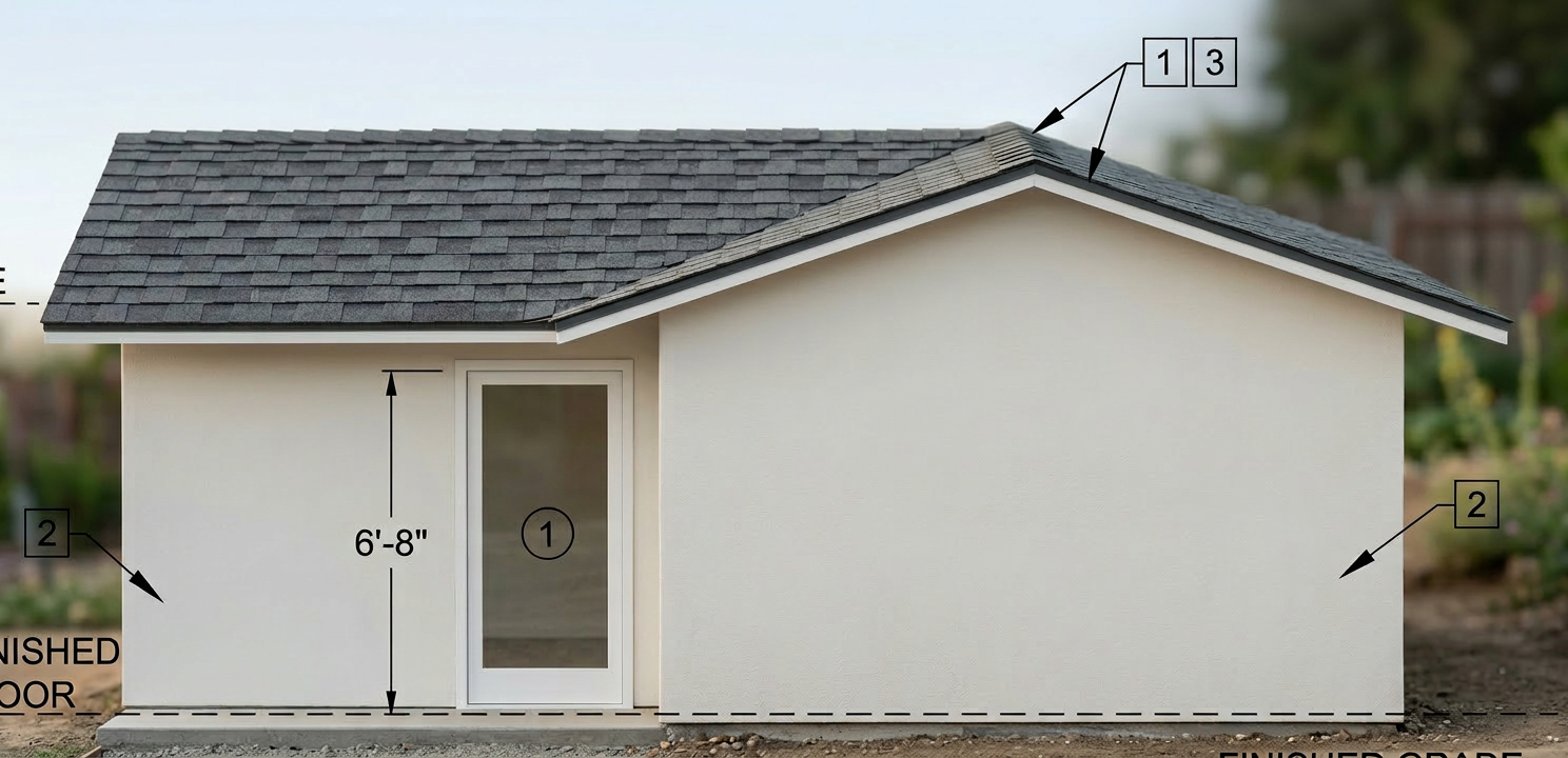render a photorealistic 3d perspective of this house keep the current materials just enhance them split face limestone walls cream stone floors keep model geometry the same windows doors roof walls enhance the current materials and make the landscape nicer vegetation detailed shadows on cream textured limestone wall and a light blue sky with a few clouds add atmospheric depth render in hyper realistic architectural visualization quality 8k resolution