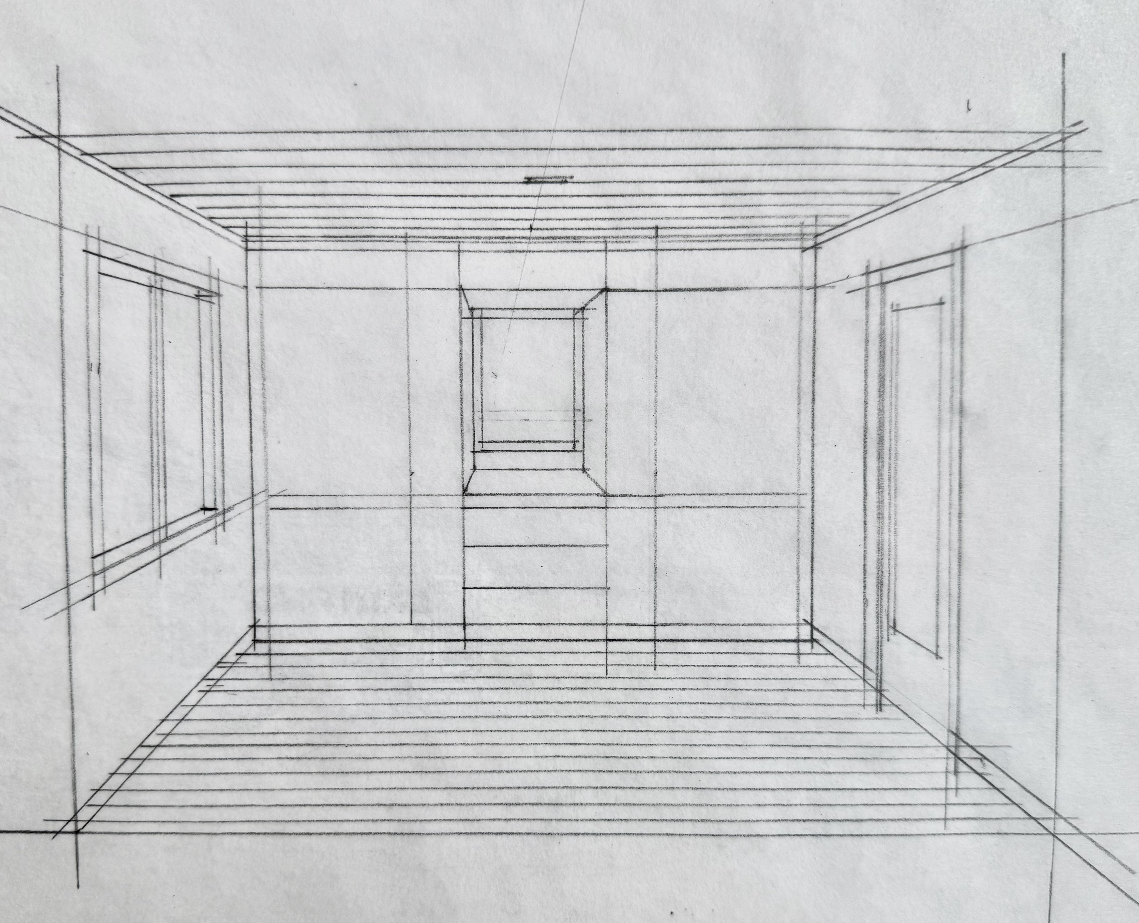 white side walls maple floor pine ceiling maple millwork on rear wall